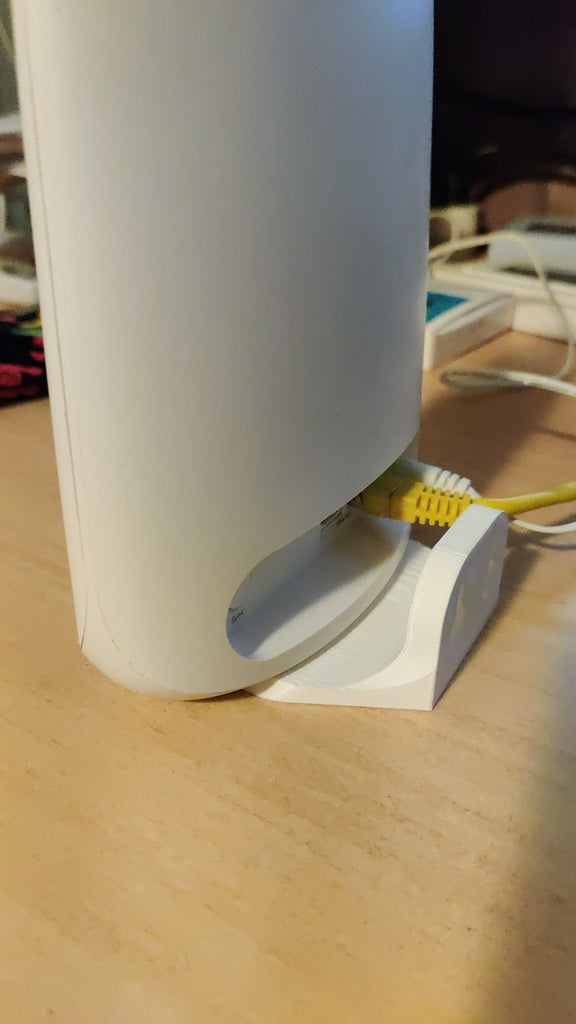 Yksinkertainen seinäteline seuraavalle Netgear Orbi AX1800:lle, piilotettuna reitittimen alle.
