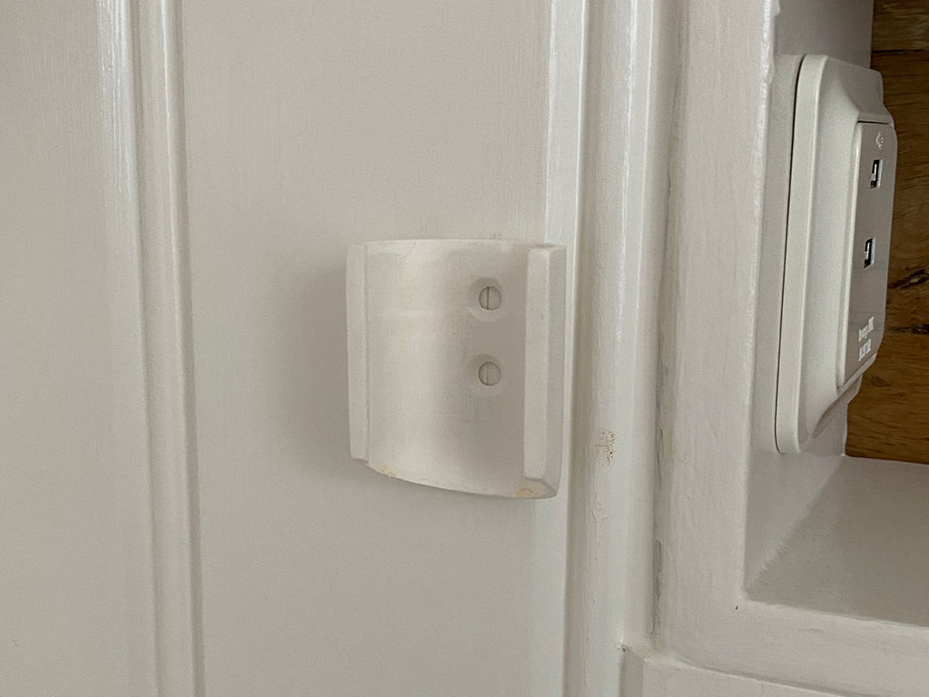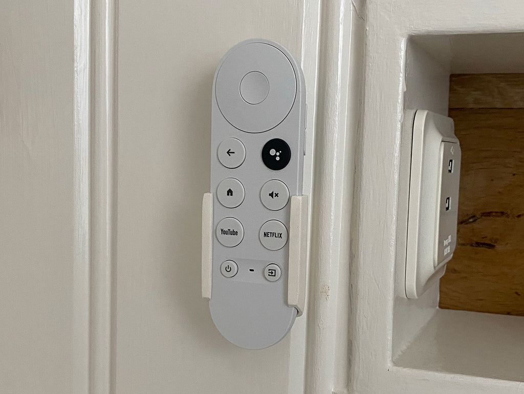 Pidike Chromecastille Google TV -kaukosäätimellä. Asetat kaukosäätimen liu'uttamalla sen ylhäältä. Alaosa on leveämpi, jotta se ei pääse liukumaan läpi. Tämän ansiosta kaukosäätimen asettaminen ja poistaminen on helppoa. Pidike on suunniteltu asennettavaksi seinään ruuveilla tai kaksipuolisella 3M-teipillä tukevan ja turvallisen asennuksen varmistamiseksi.