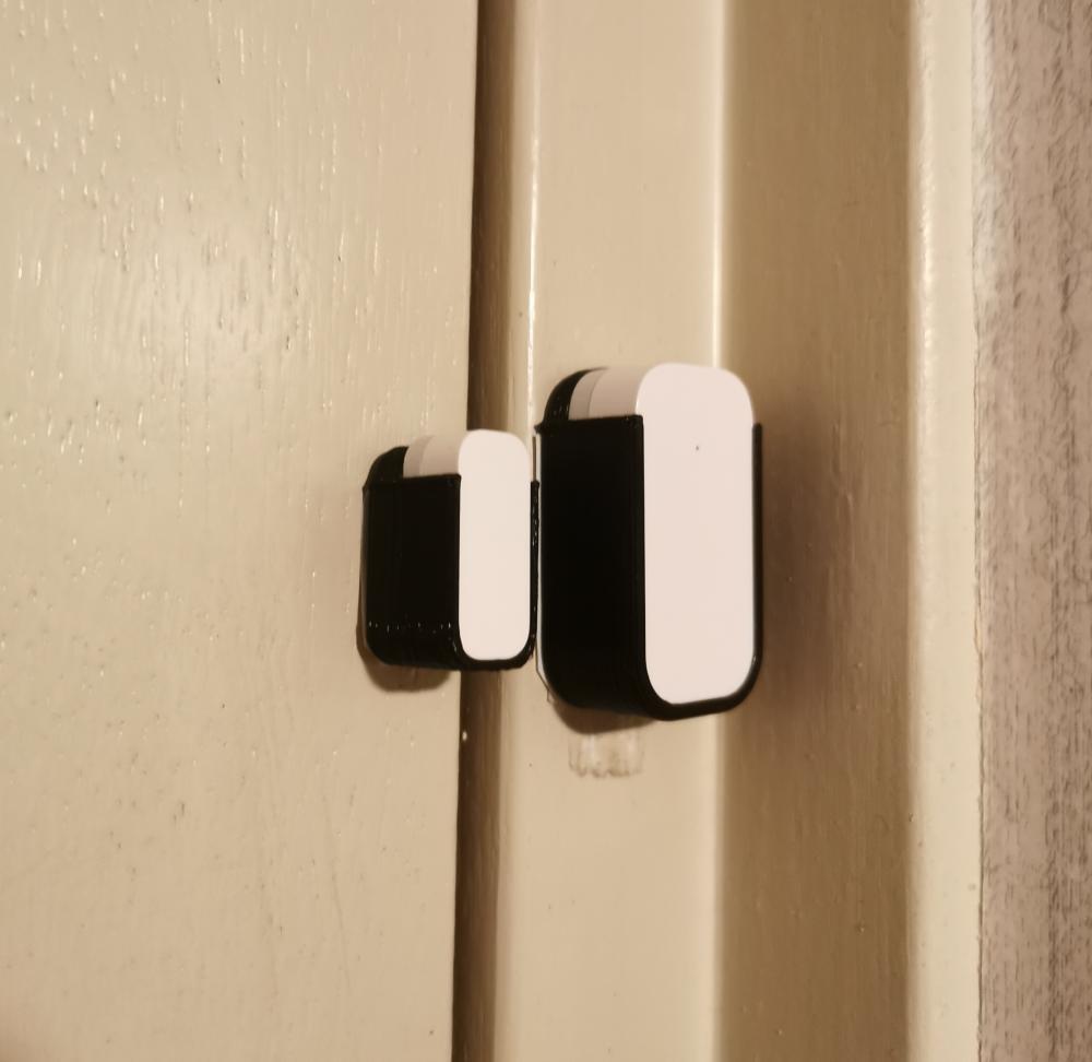 Kaksi yksinkertaista kiinnikettä Xiaomi Aqara ovi- ja ikkunaantureille.