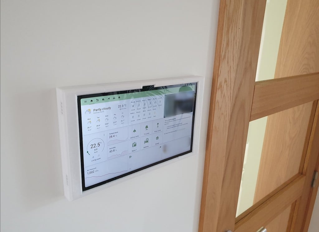 Seinäkiinnike Lenovo Tab M10 Plus Gen3 -tabletille. Tämä kiinnike on suunniteltu asentamaan Lenovo Tab M10 seinälle käytettäväksi älykotina / Home Assistant -ohjauspaneelina.