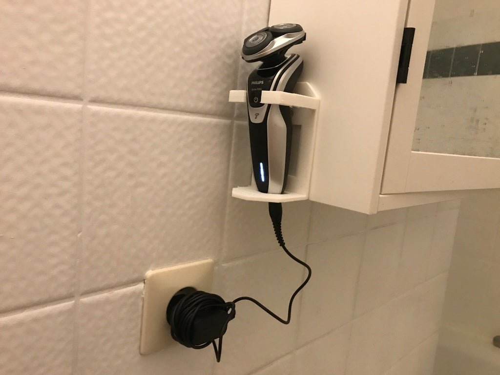Tämä pieni pidike Philips Series 5000 -sarjalle voidaan ruuvata tai liimata (ei sisälly toimitukseen) seinään. Pohjassa on reikä latauskaapelia varten, joten voit ladata parranajokonetta, kun se on pidikkeessä.