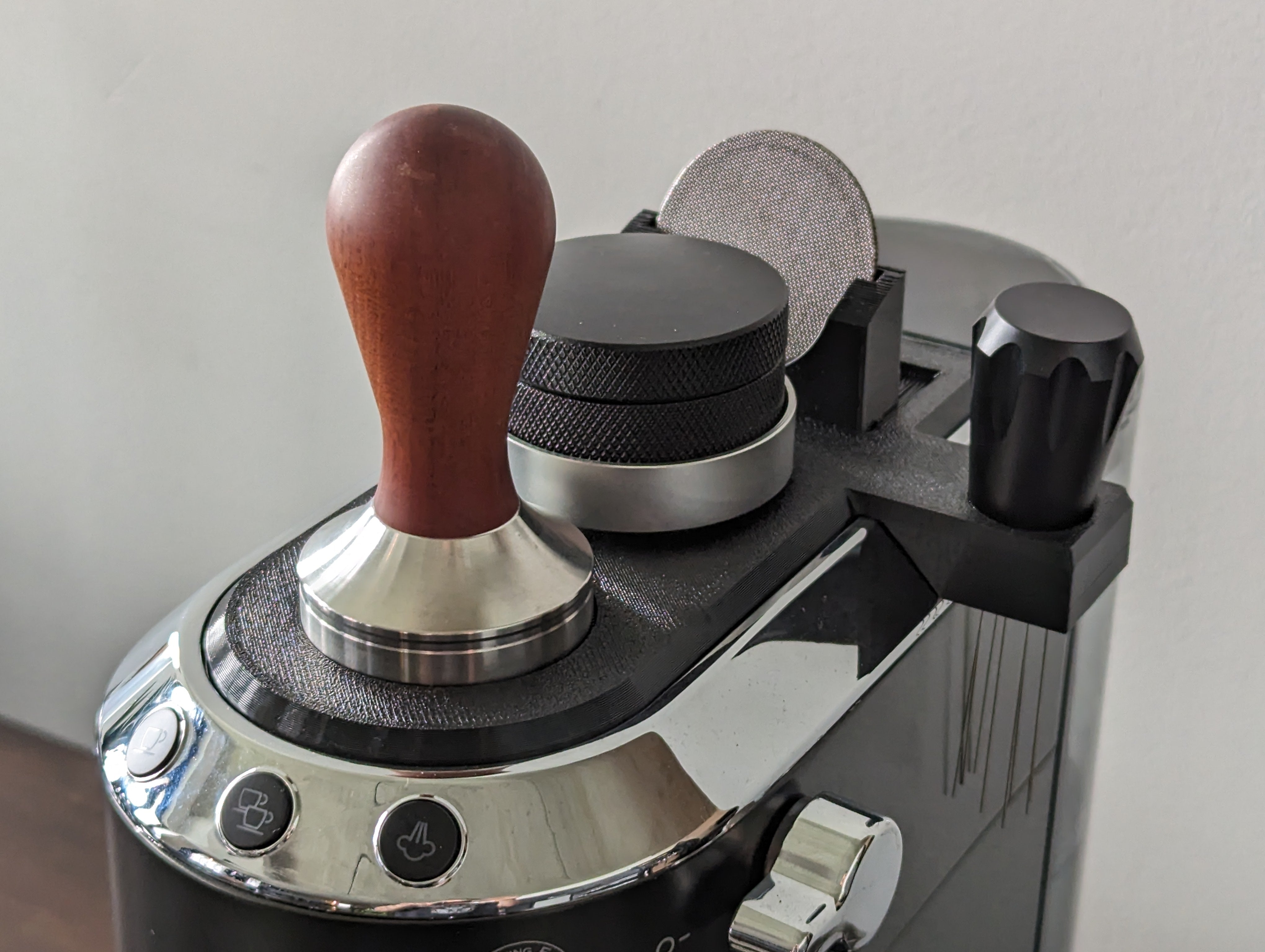 Se toimitetaan kätevän työkalutelineen kanssa kahdelle 51 mm työkalulle, mikä mahdollistaa sekä WDT-työkalun että kaksi puck-huppua varastoinnin. Tämä lisävaruste ei ainoastaan anna siistimpää pintaa, vaan varmistaa myös, että kaikki on käden ulottuvilla, kun sinun on keitettävä täydellinen kuppine kahvia.