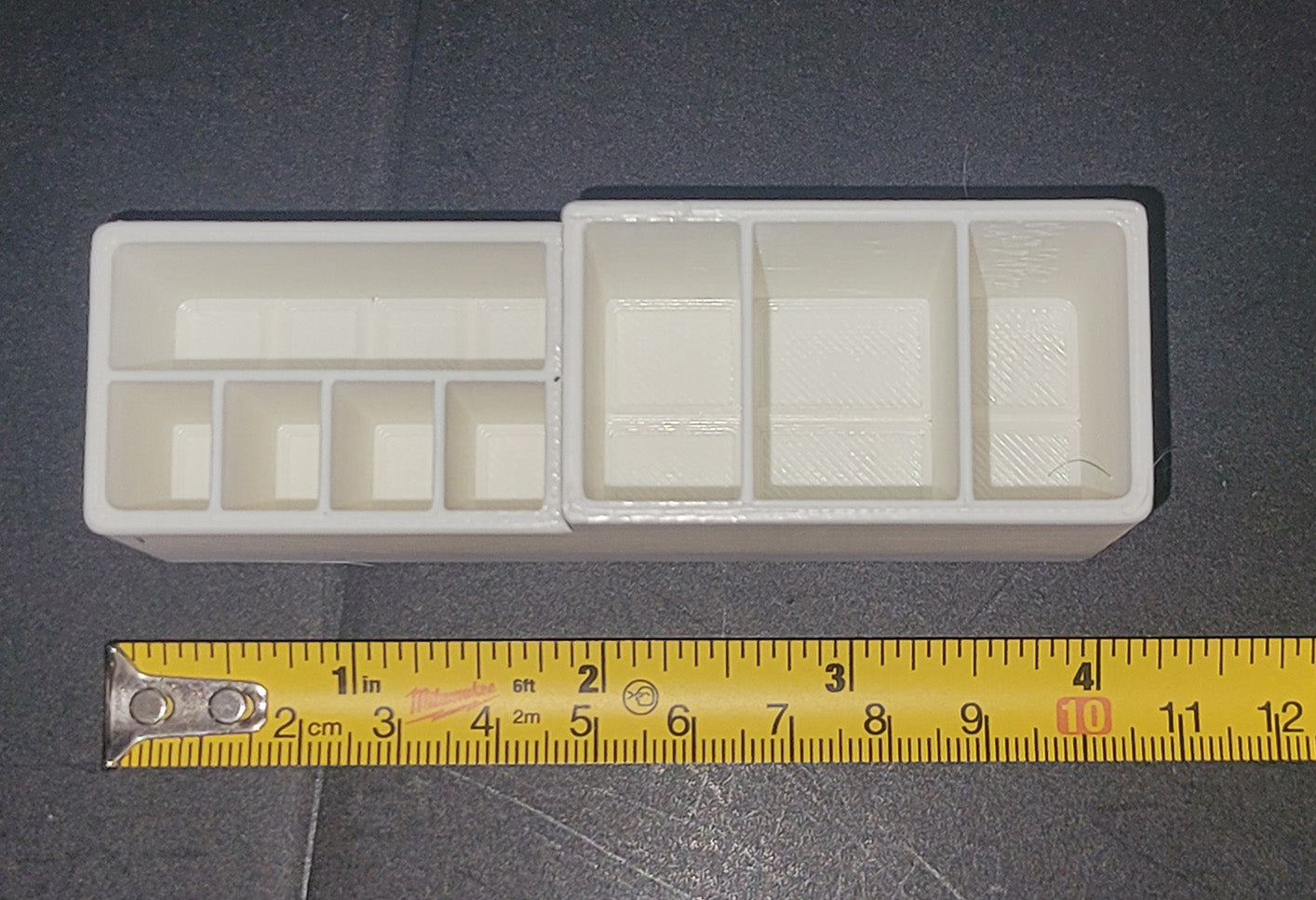 Tämä käytännöllinen järjestäjä on suunniteltu pitämään hammaslankasi ja hammastikusi yhdessä ja järjestyksessä. Kompaktien mittojensa ansiosta (100 mm x 30 mm x 45 mm) se sopii ihanteellisesti huomaamattomasti useimpiin kylpyhuonelaatikoihin, hyllylle tai toilettilaukkuun, kun olet liikkeellä. Tämä älykäs hammaslangan ja hammastikun pidike varmistaa, että sinulla on aina helppo pääsy suunhoitotuotteisiisi käden ulottuvilla. Se auttaa pitämään kylpyhuoneesi siistinä ja tekee päivittäisestä suuhygieniastasi hallittavampaa ja tehokkaampaa.