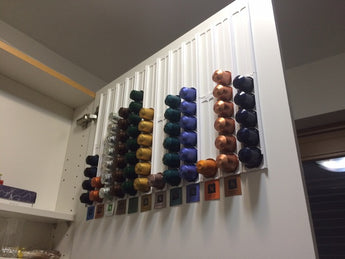 Tämä käytännöllinen Nespresso kapseliteline on suunniteltu järjestämään kahvikapselisi tehokkaasti ja tyylikkäästi keittiössä. Tilaa jopa 10 Nespresso-kapselille, joten se tarjoaa sinulle selkeän säilytysratkaisun, joka säästää tilaa työtasolla ja pitää suosikkivaihtoehtosi käden ulottuvilla.