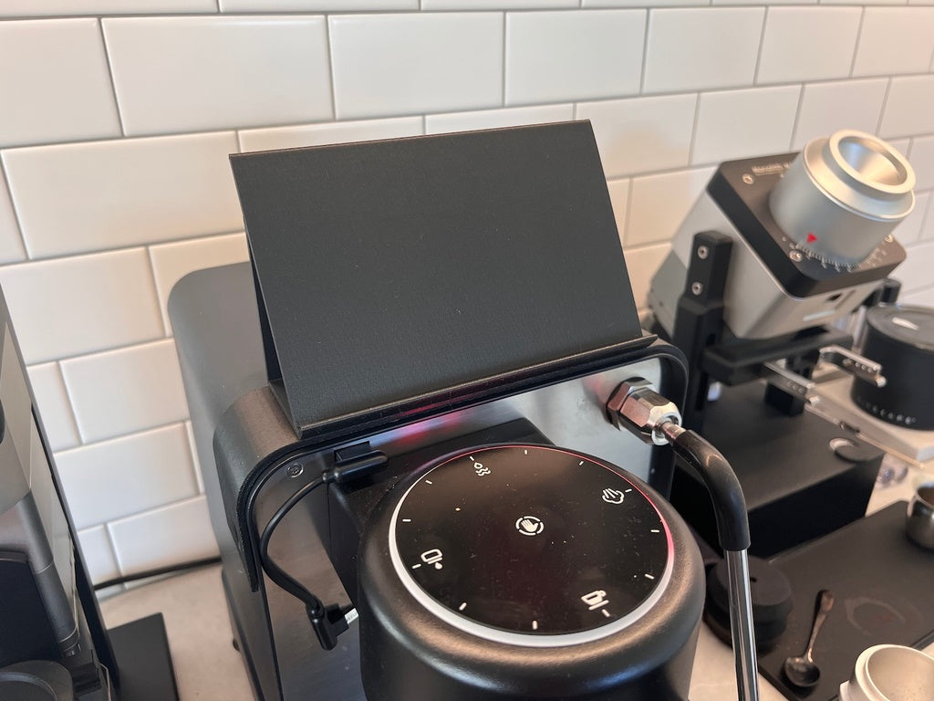 Päivitä espresso-asetuksesi tällä Decent Espresso -tablettitelineellä, joka on suunniteltu erityisesti sopimaan tehdaskiinnitysreikiin. Tämä teline ei ole vain käytännöllinen, vaan se myös varmistaa vakaat perustan tabletille brewing-työsi aikana. Se pitää tablettisi turvallisesti ja oikealla korkeudella, mikä helpottaa reseptien seuraamista tai säätöjen tekemistä espresso-koneessasi. Vahvan rakenteensa ja yksinkertaisen muotoilunsa ansiosta tämä teline on erinomainen lisä mihin tahansa kahvialueeseen.
