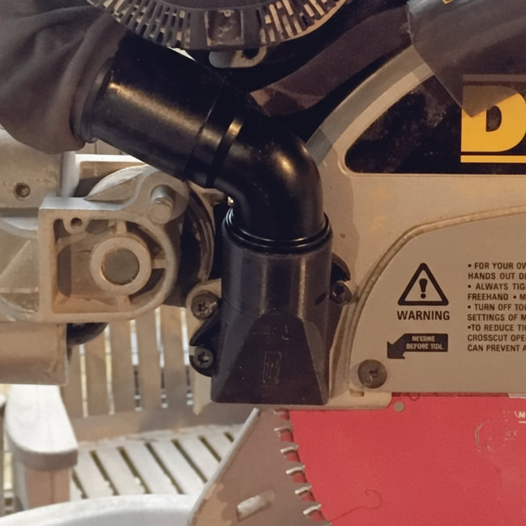 3D-tulostettu pölynpoistosuutin DeWalt DW708:lle. Tämä on korvaus alkuperäiselle, nykyiselle vanhentuneelle tuotteelle. Se on suunniteltu auttamaan sahanpurun ja pölyn poistossa käytön aikana pitämään työalueesi puhtaana.