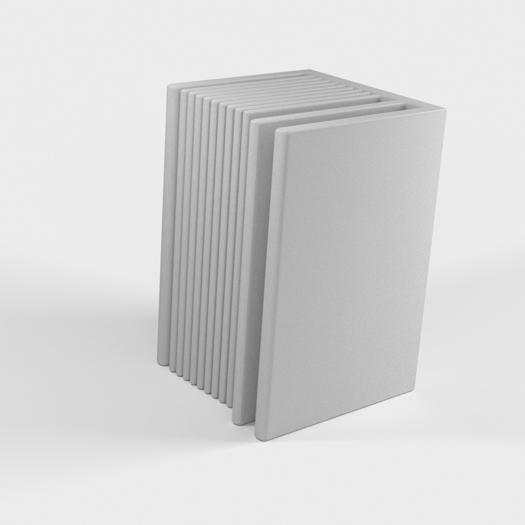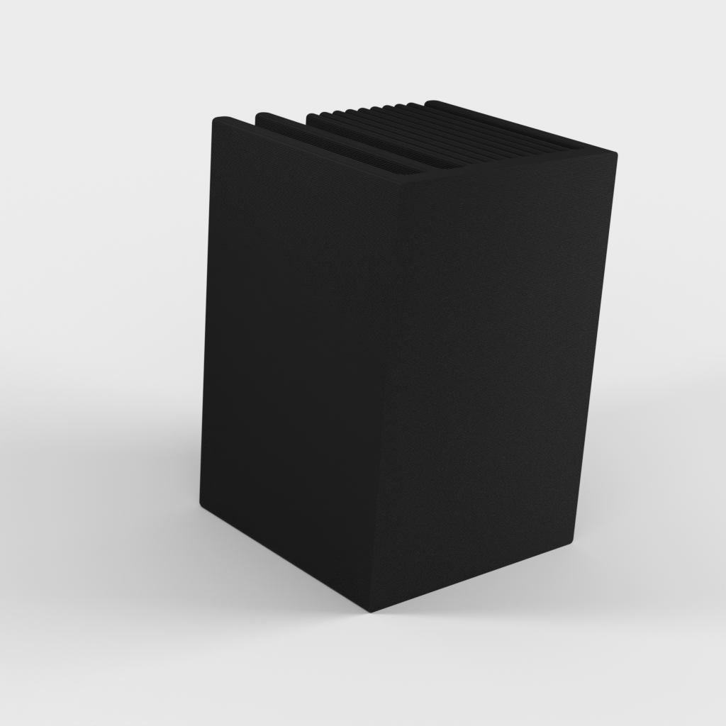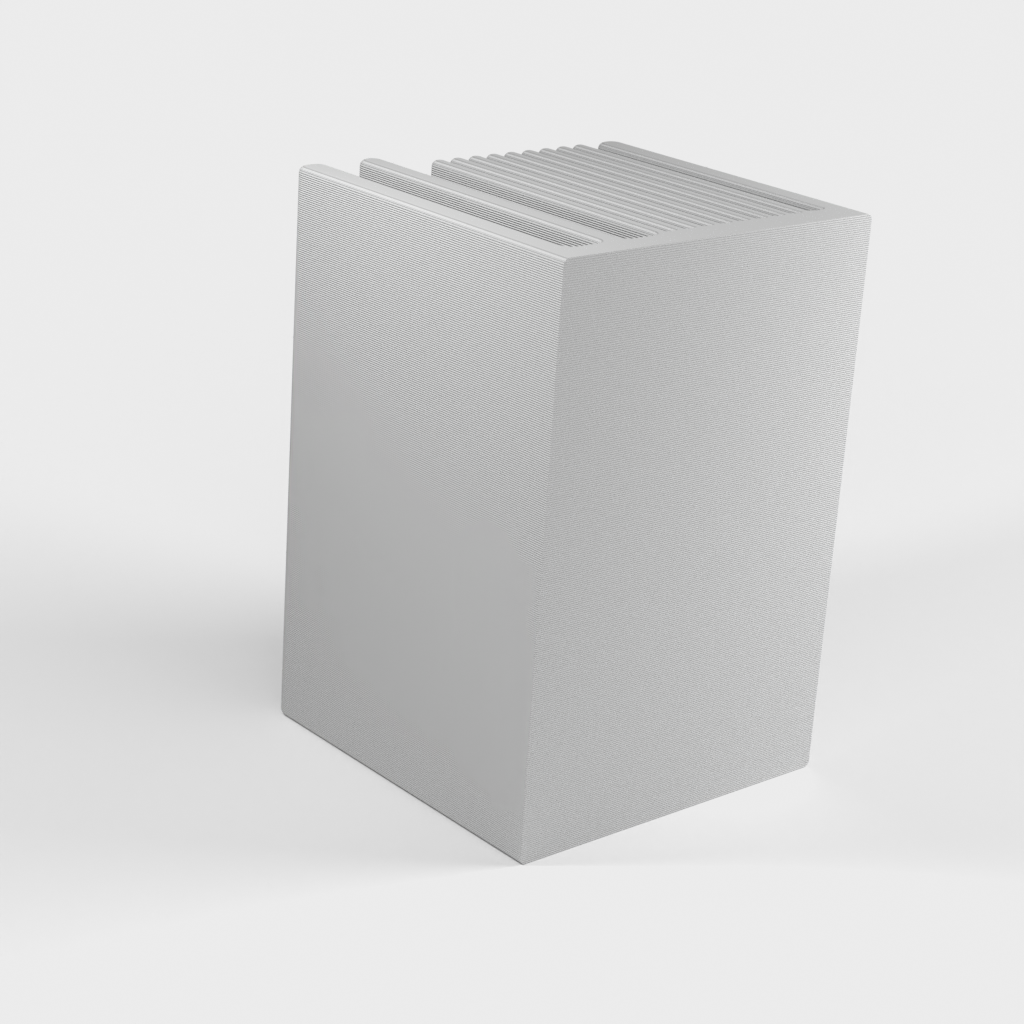 Tämä leikkuulaudan järjestäjä tarjoaa käytännöllisen ratkaisun keittiösi siistinä ja järjestyksessä pitämiseen. Se on suunniteltu erityisesti IKEA Finfordela -joustaville leikkuulaudoille ja mahdollistaa pystysuoran säilytyksen, mikä vapauttaa tehokkaasti tilaa keittiön työtasolla. Tarkasti suunniteltujen urien ansiosta tilaa on kahdeksalle 2 mm paksulle leikkuulaudalle, kahdelle 12 mm paksulle leikkuulaudalle ja yhdelle 5 mm paksulle leikkuulaudalle. Tämä muotoilu varmistaa, että leikkuulaudat ovat helposti saatavilla, kun niitä tarvitset, ja samalla ne on siististi piilossa.