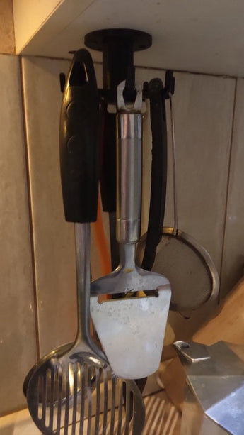 Pyörivä keittiövälineiden ripustin on erittäin käytännöllinen ja tilaa säästävä ratkaisu jokaiseen keittiöön. Hyvin harkitun muotoilunsa ansiosta sen avulla voit helposti järjestää eniten käytetyt välineesi, jotta ne ovat aina käden ulottuvilla ruoanlaiton aikana. Telineen innovatiivinen pyörimistoiminto varmistaa vaivattoman pääsyn jokaiseen välineeseen, mikä eliminoi sotkun ja turhautumisen. Voit helposti ripustaa useita keittiövälineitä tukeviin koukkuihin, mikä edistää siistimpää ja selkeämpää keittiötilaa. Tämä monipuolinen pidike on suunniteltu optimoimaan työtilasi ja lisäämään samalla toiminnallisen ja tyylikkään elementin keittiösi sisustukseen.