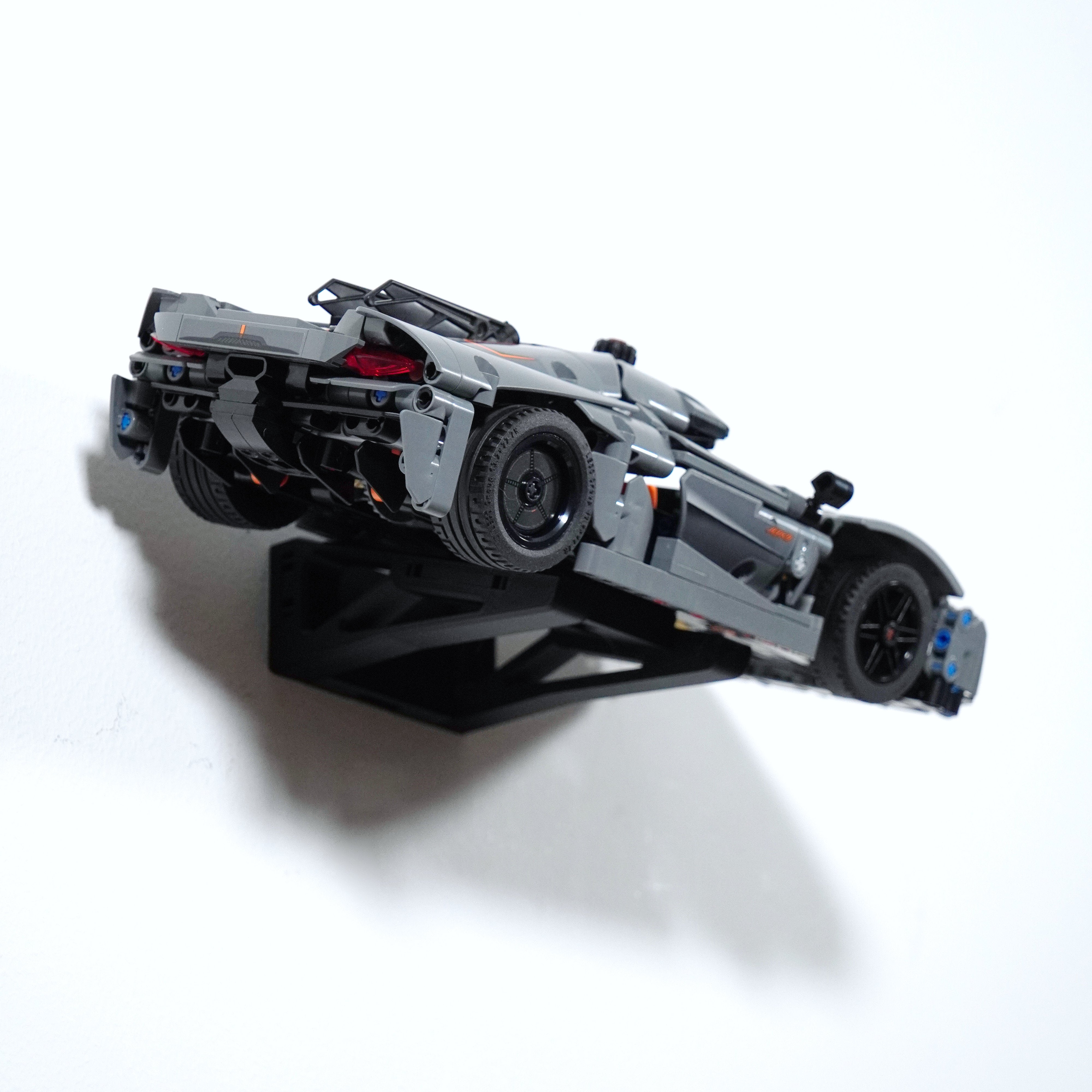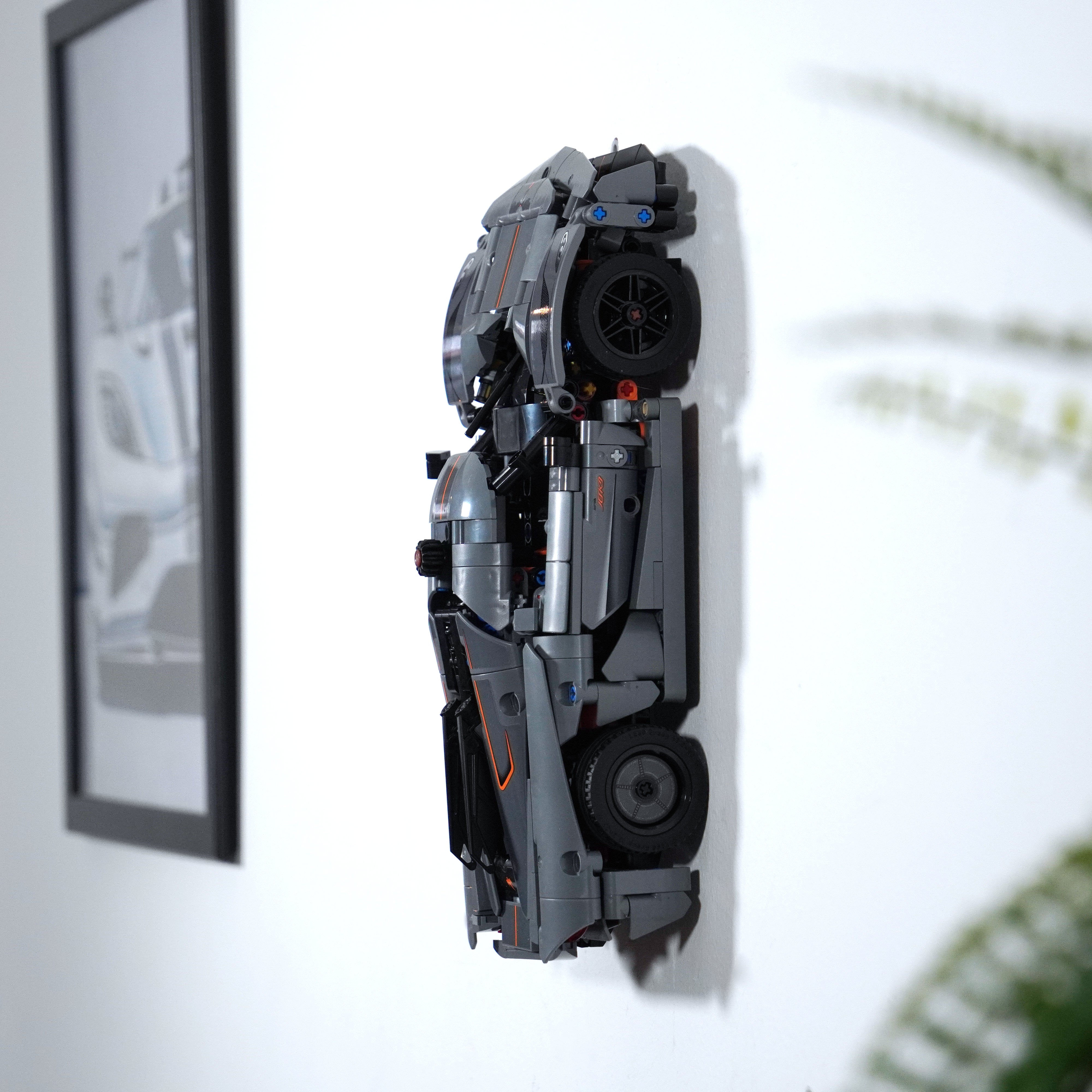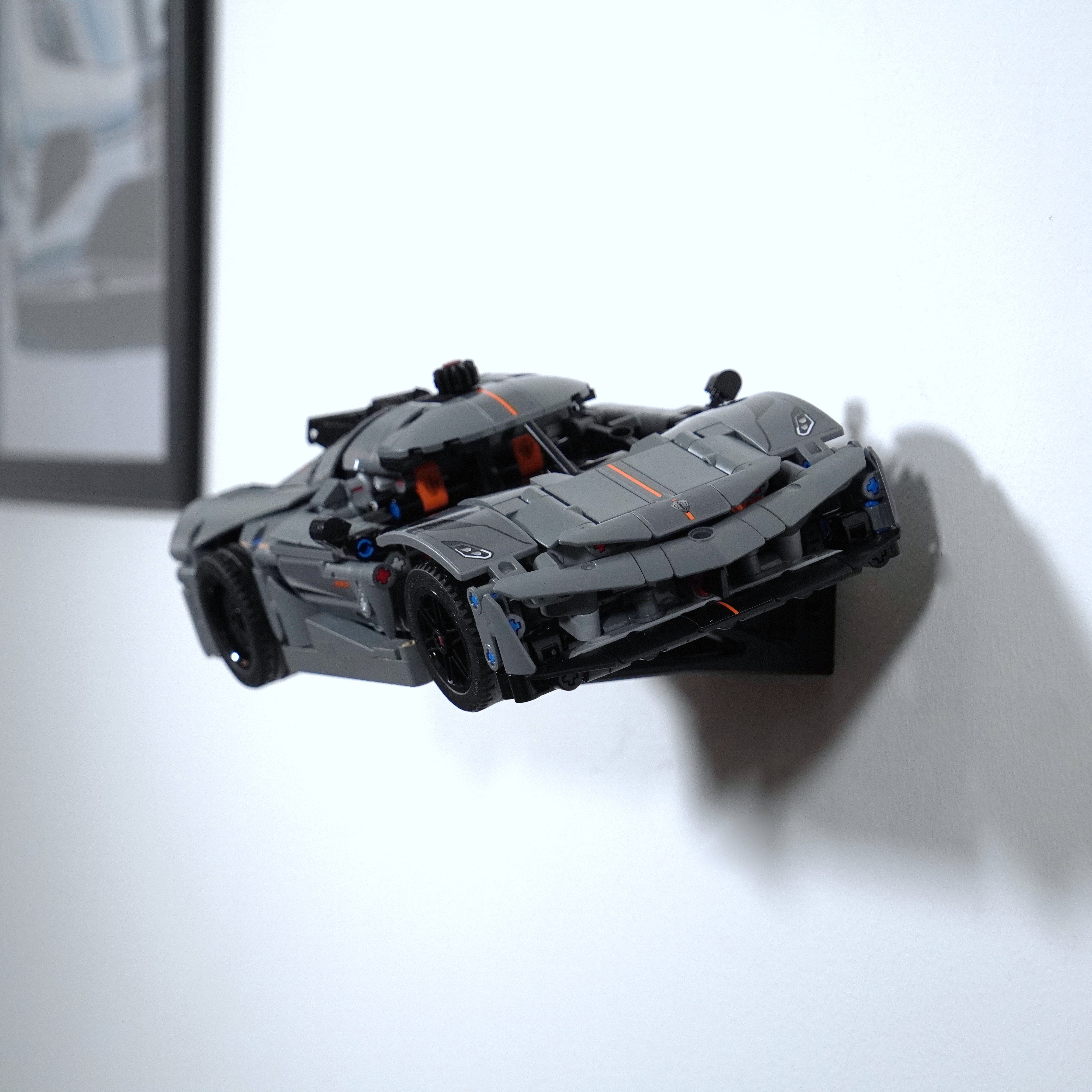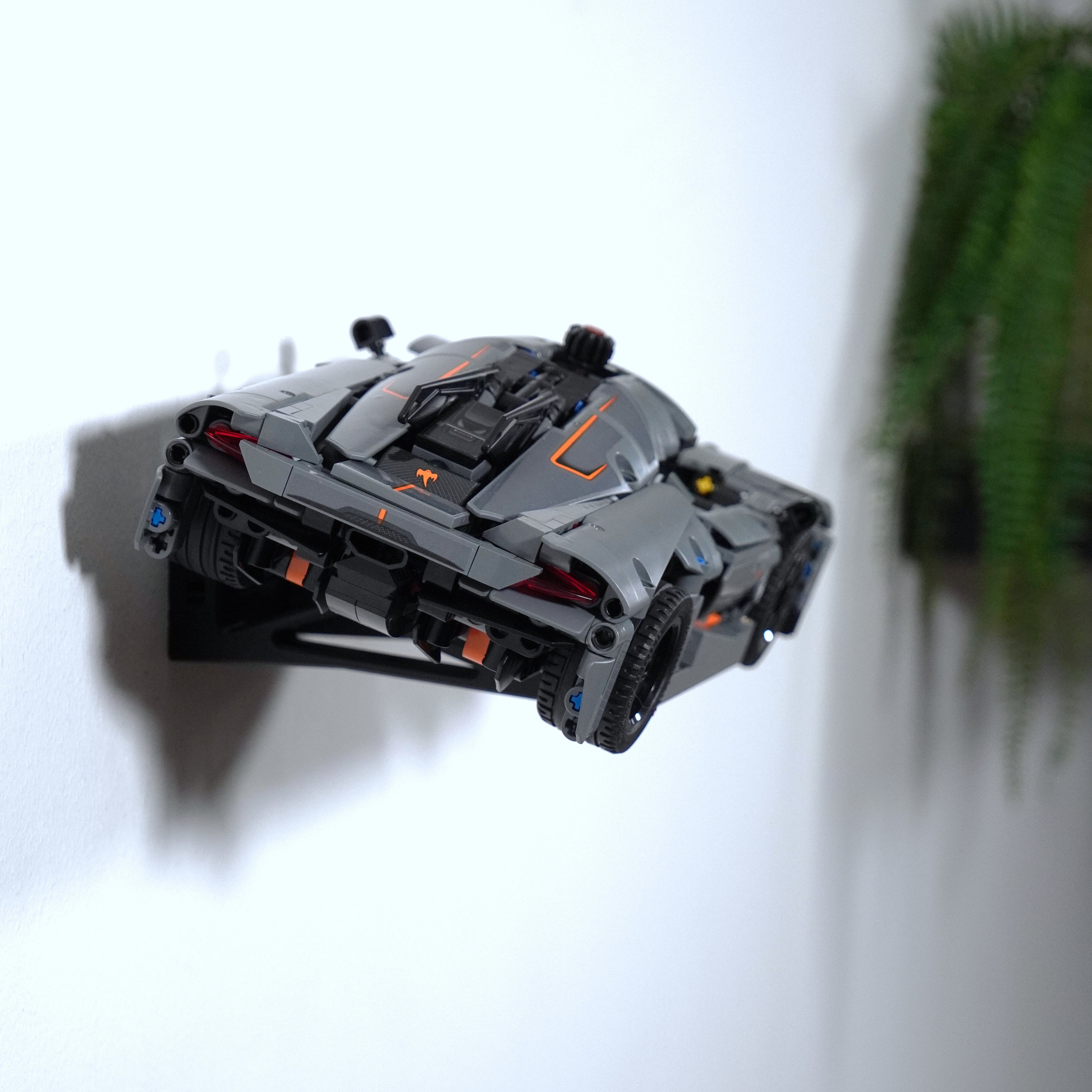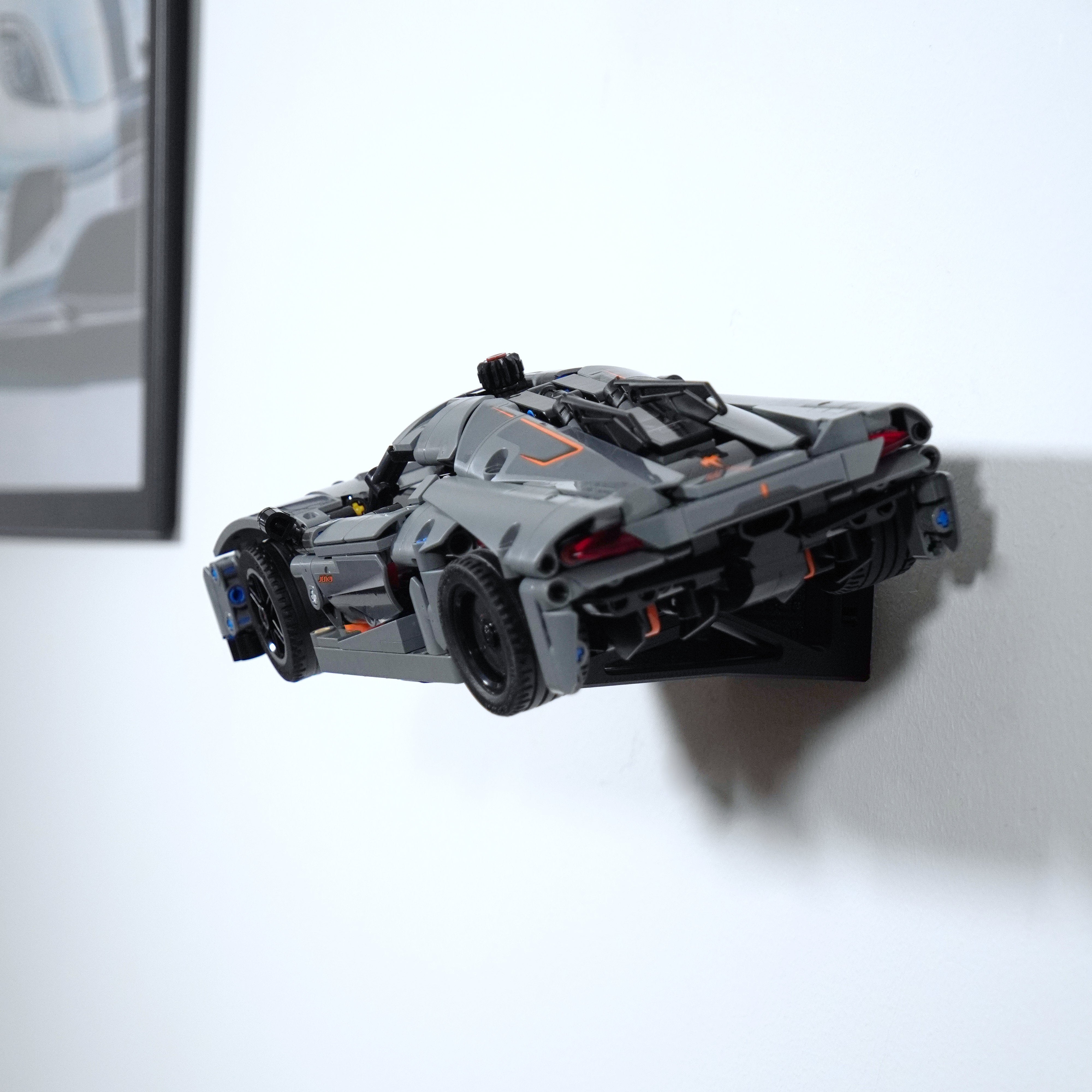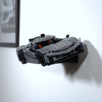 Tämä seinäkiinnike on suunniteltu erityisesti Technic Koenigsegg Jesko -malleille, sekä harmaalle että valkoiselle versiolle. Kiinnike mahdollistaa auton esittelyn vaakasuorassa oikealle tai vasemmalle kääntyneenä sekä pystysuorassa litteänä seinää vasten. Rakenne takaa helpon asennuksen vain yhdellä ruuvinreiällä ja auton helpon irrottamisen.