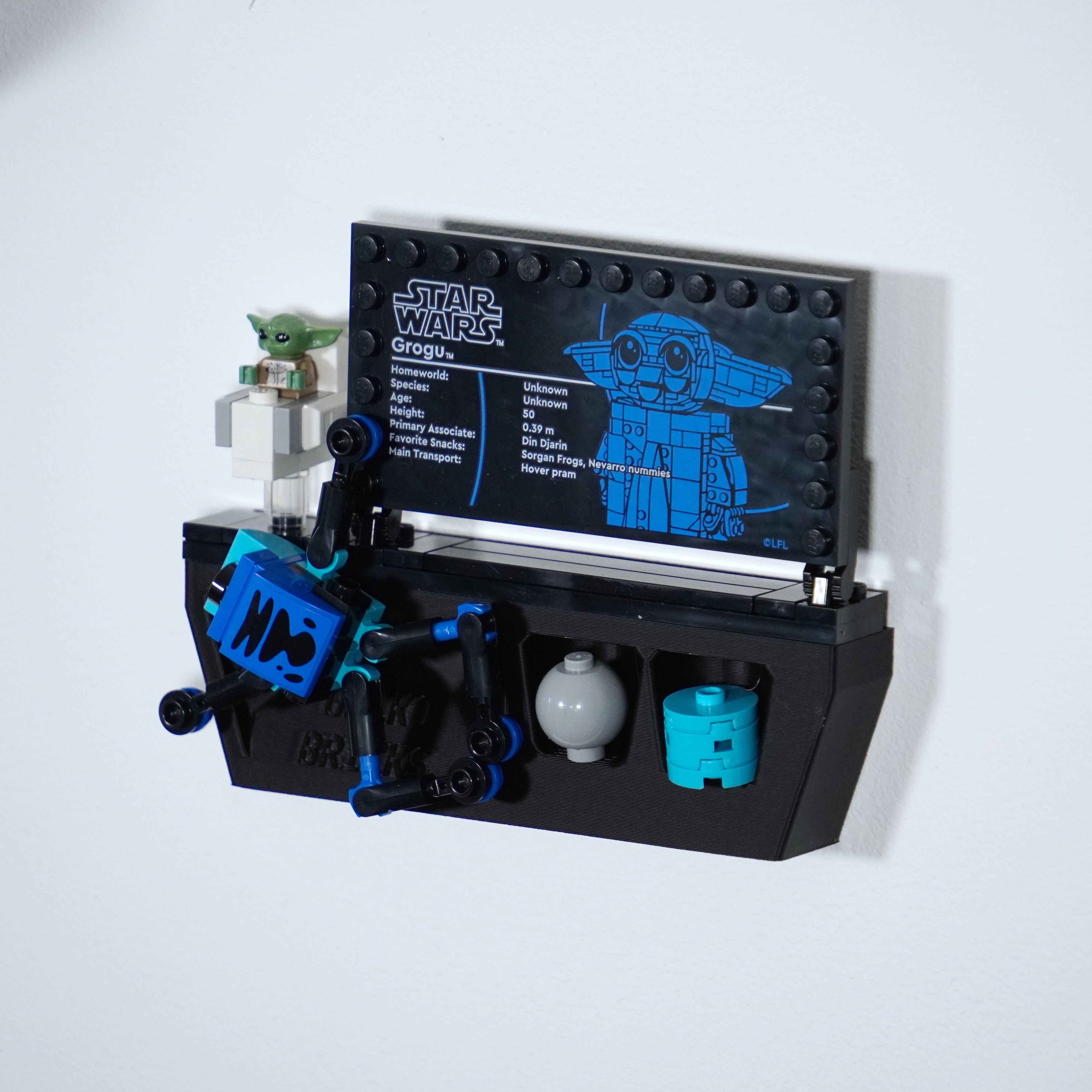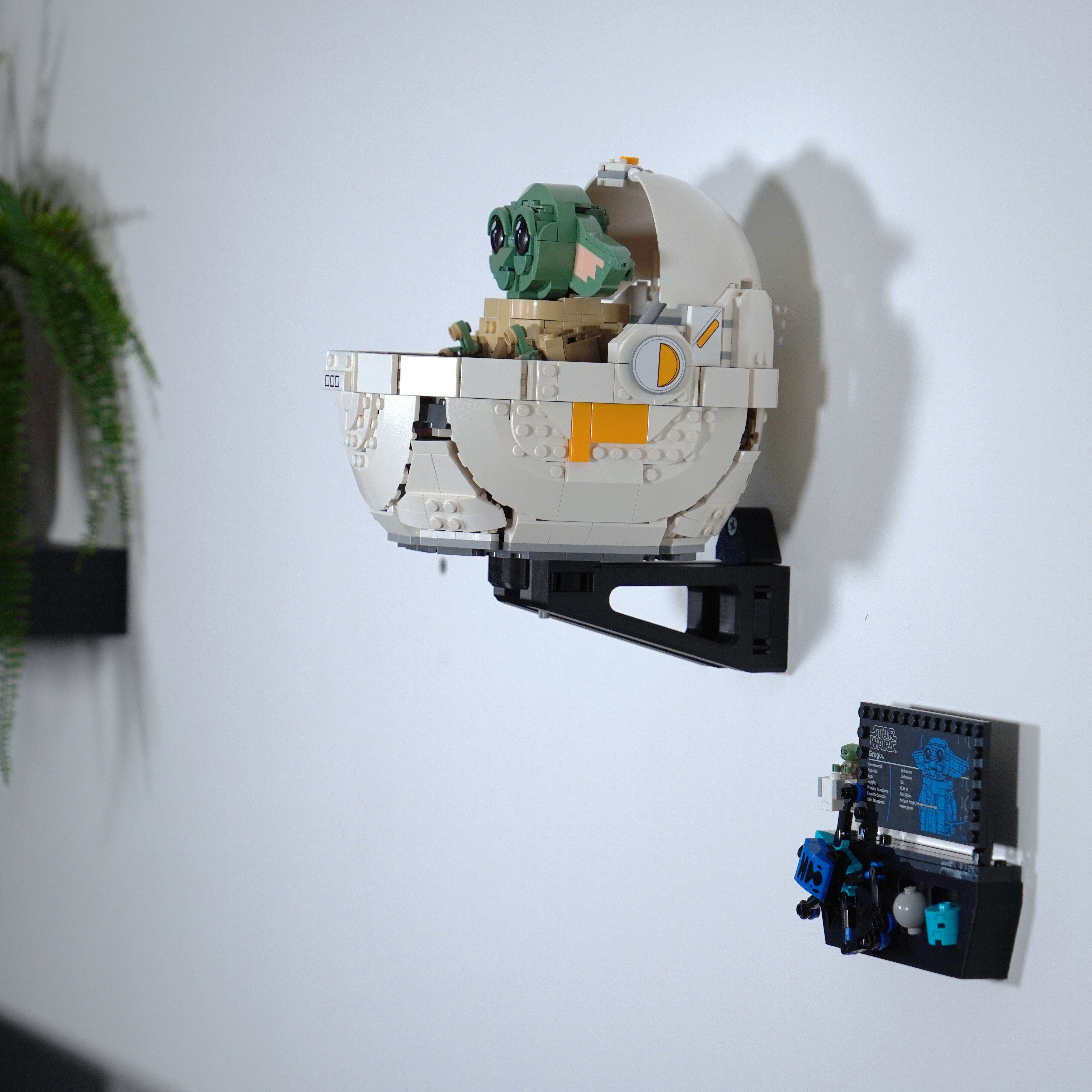 Hallitse kokoelmaasi tällä seinäkiinnikkeellä, joka on suunniteltu erityisesti LEGO Star Wars Grogu -setille. Kiinnike asennetaan helposti yhdellä ruuvilla ja varmistaa, että malli roikkuu vakaasti. Siinä on myös tilaa sekä informaatiolaatalle että lisävarusteille, jotta kaikki pysyy yhdessä paikassa.