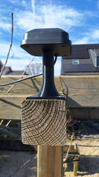 GPS-antennikiinnike Segway Navimow -laitteeseen. Tämä kiinnike on suunniteltu sopimaan tavalliseen 90 mm:n puupalkkiin, joten voit helposti asentaa Navimow GPS:n pergolan tai vastaavan rakenteen päälle takapihalla.