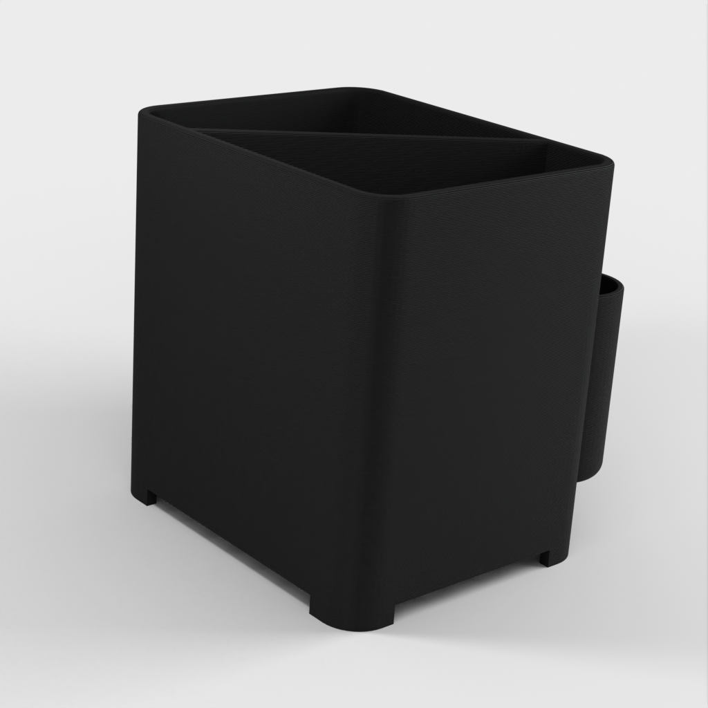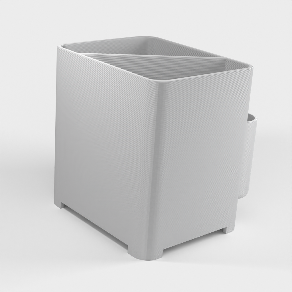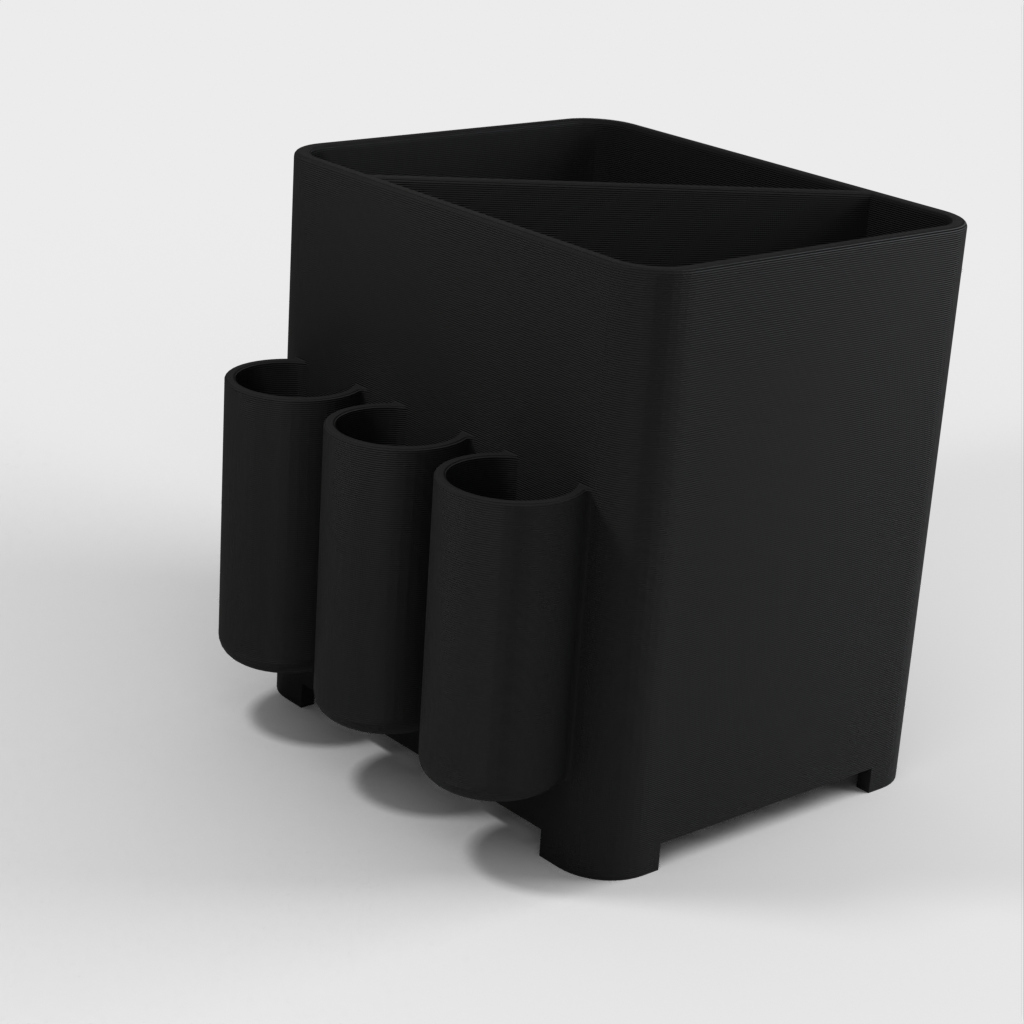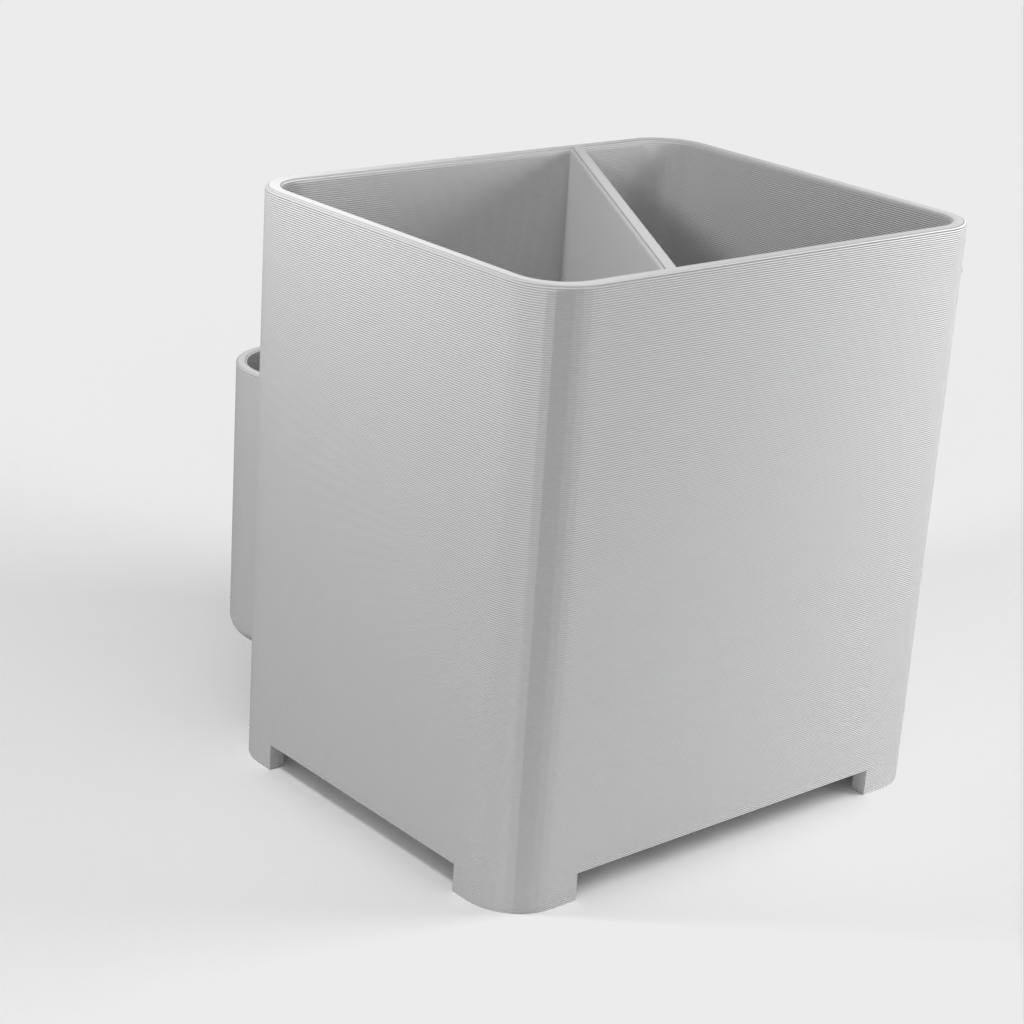 Yksinkertainen hammasharjateline hammasharjan, hammastahnan ja partakoneen terien säilytykseen. Pidike pitää hygieniatarvikkeet järjestyksessä ja helposti saatavilla.