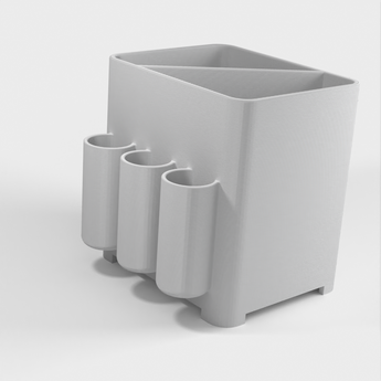 Hammasharjan ja hammastahnan pidike, jossa on tilaa partakoneen terille.