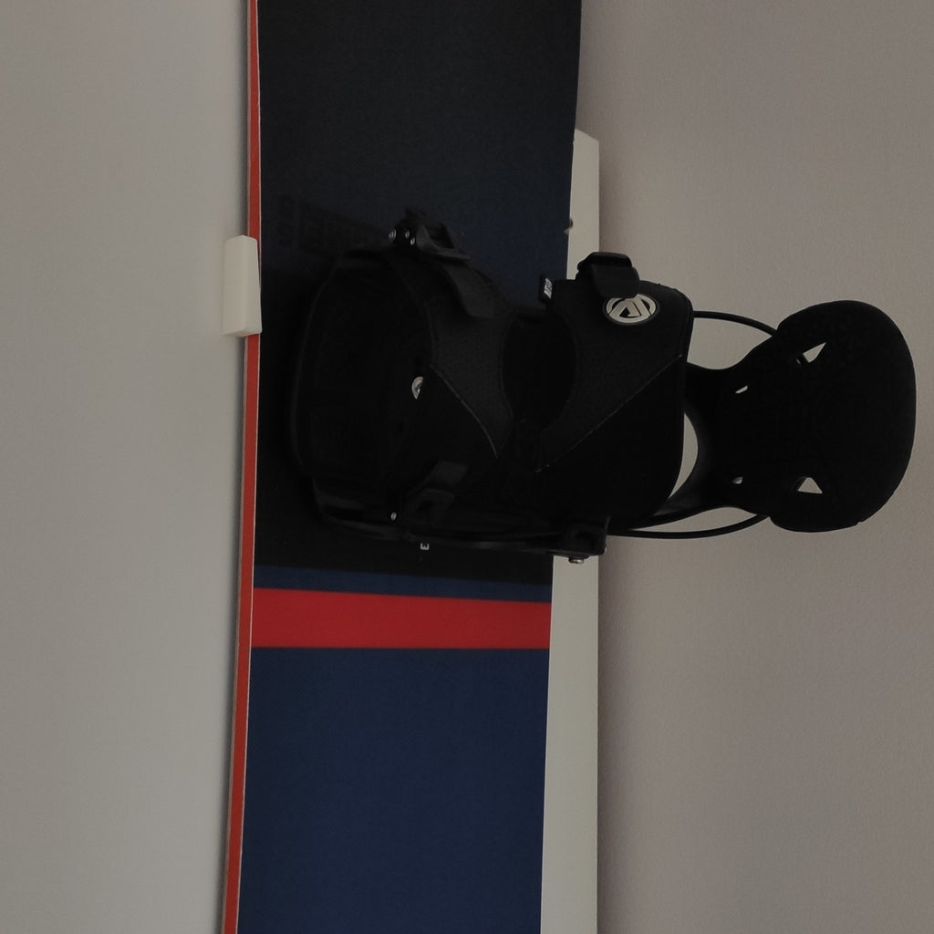 Yksinkertainen seinäkiinnitys lumilaudallesi. Tämä pidike on suunniteltu sopimaan kaikkiin lumilautatyyppeihin. Sinun tarvitsee vain mitata etäisyys ja asentaa se siten, että lauta puristuu kiinni ja voidaan irrottaa nostamalla ylös.