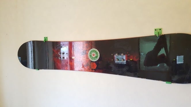 Nämä ovat osia lumilaudan kiinnittämiseen seinään. Yläosia voidaan liikuttaa, jotta ne voidaan avata. Lumilauta voidaan helposti sijoittaa pidikkeisiin, mikä tekee seinästäsi tai työpajastasi siistimmän.