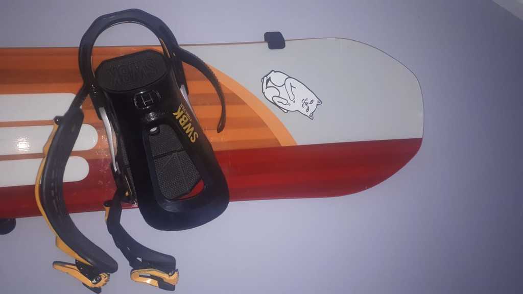 Seinäkiinnitys lumilaudalle painovoimaperiaatteen mukaisesti. Tämän 3D-tulostetun seinäkiinnikkeen avulla lumilautasi voi helposti ja turvallisesti roikkua seinällä, mikä auttaa pitämään huoneesi tai autotallisi siistimpänä.