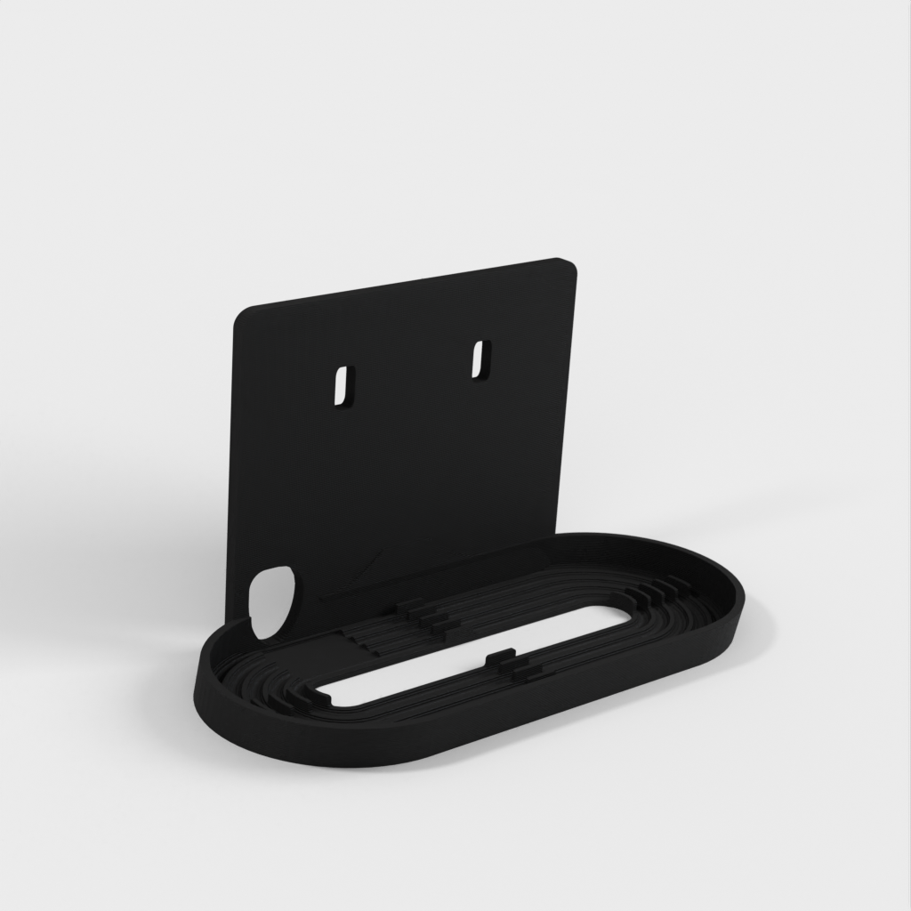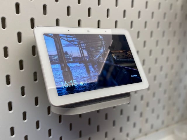 Yksinkertainen asennusratkaisu Nest / Google Home Hubille IKEA Skadis -levyille. Napa on mahdollisimman lähellä korttia, ja kaapeli voidaan syöttää jonkin Skadisin olemassa olevista aukoista, mikä tarkoittaa, että kaapeleita ei näy. Vaatii kaksi yleiskoukkua siistiä asennusta varten.