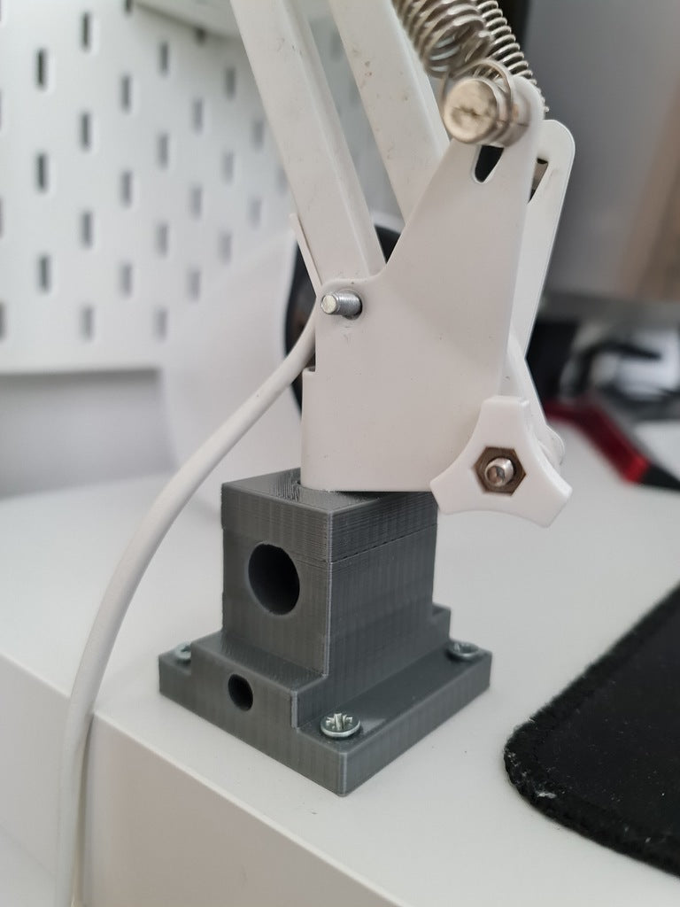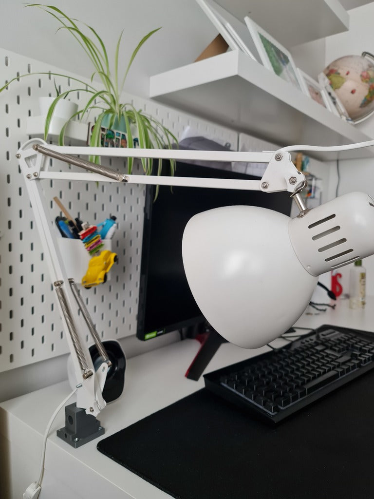 Pöytäteline IKEA Tertial -valaisimelle. Kiinnike voidaan kiinnittää suoraan työpöydälle maksimaalisen vakauden ja minimaalisen liikkeen saavuttamiseksi. Sopii mihin tahansa toimisto- tai opiskelutilaan optimaalisen valaistuksen takaamiseksi. Tertial-valaisin voidaan helposti sijoittaa kiinnikkeeseen puhtaan ja siistin työtilan saavuttamiseksi.