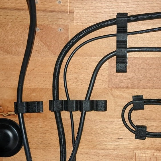 Kaapeliohjauspidikkeet käytettäväksi kaksipuolisen teipin kanssa.