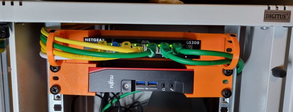 Tämä kiinnike on suunniteltu Netgear GS308v3 -kytkimen kiinnittämiseen 10'' Rack-koteloon. Kannattimessa on kaapelinhallintakiinnikkeet molemmilla puolilla, jotta asennus pysyy järjestyksessä ja siistinä.