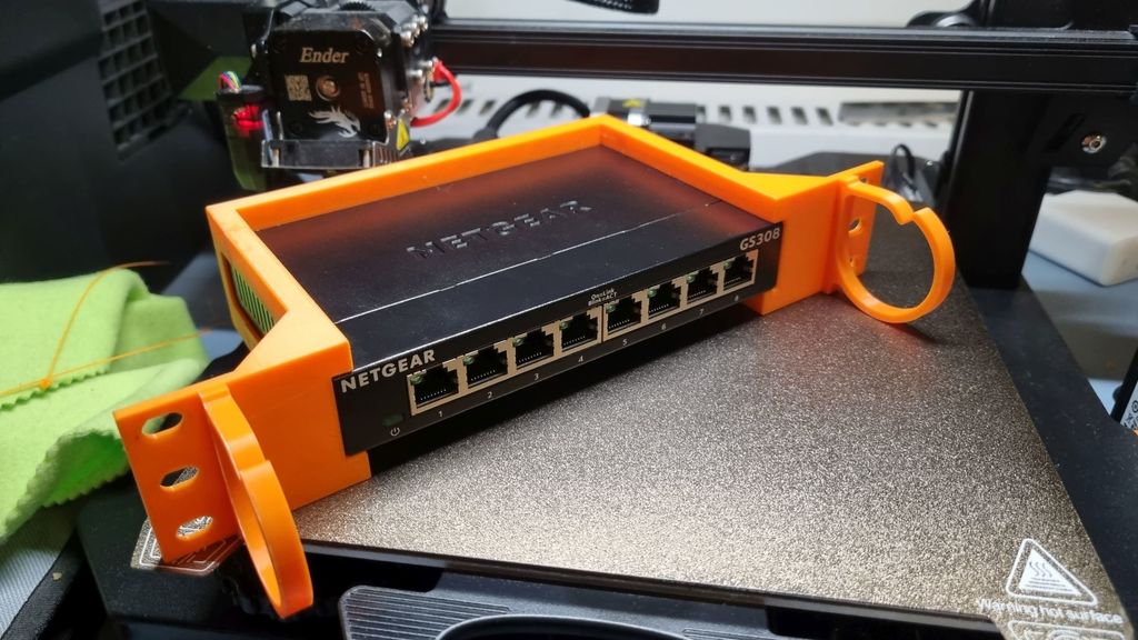 - Designet til montering af Netgear GS308v3 switch i 10 tommer rackskabe
