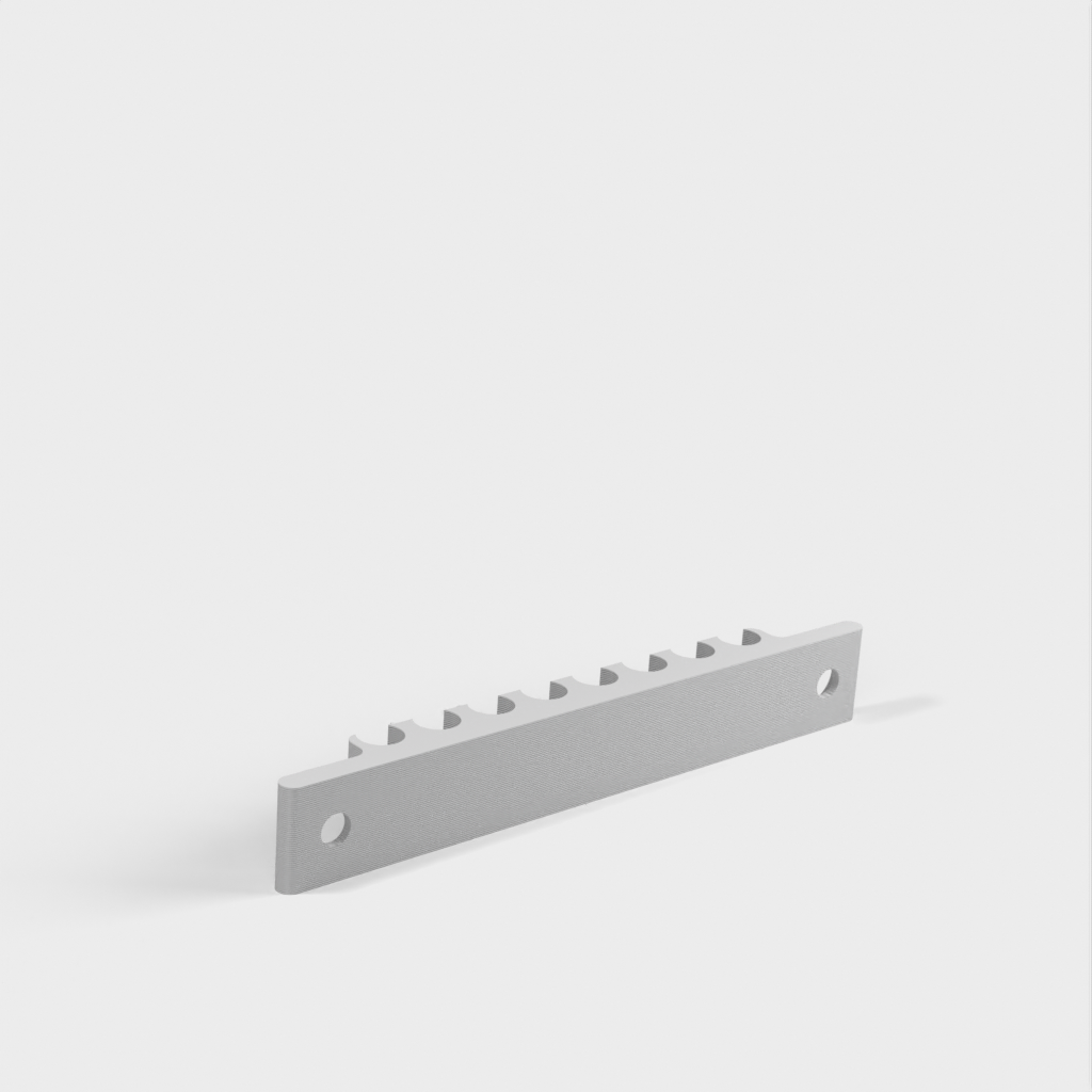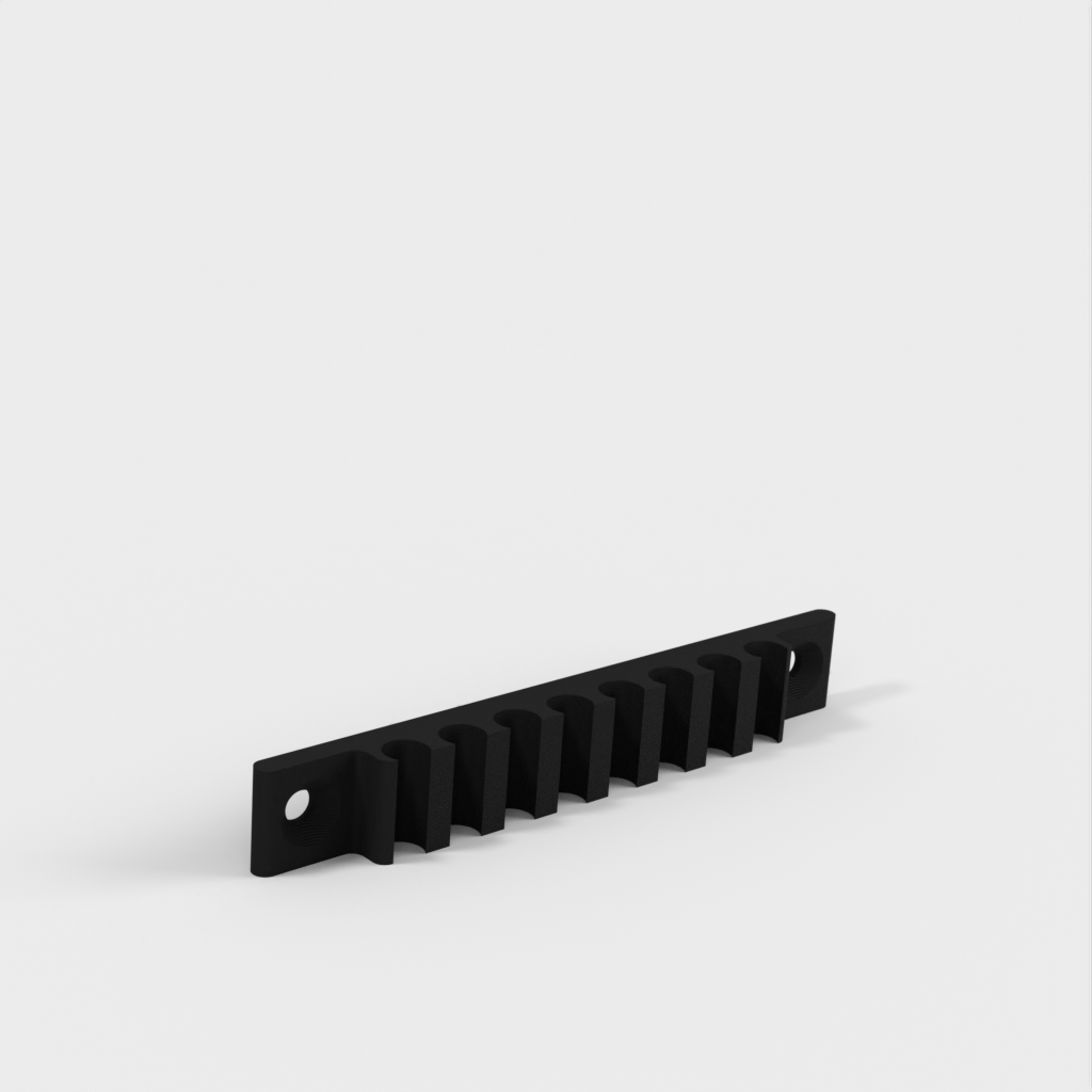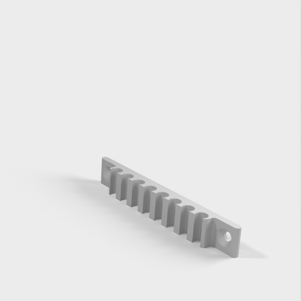 8-johtiminen seinäkiinnike sopii erinomaisesti kaapeleiden järjestämiseen seinäpinnalla. Tämä pidike on ihanteellinen pitämään kaapelit suorassa ja järjestyksessä. Sen reikiin mahtuu 7 mm:n kokoisia kaapeleita, kuten TV:n koaksiaalikaapeli, Ethernet-kaapeli ja 14AWG 2-johtiminen kaiutinkaapeli. Tämä on loistava ratkaisu autotallialueen pitämiseen siistinä ja järjestyksessä.