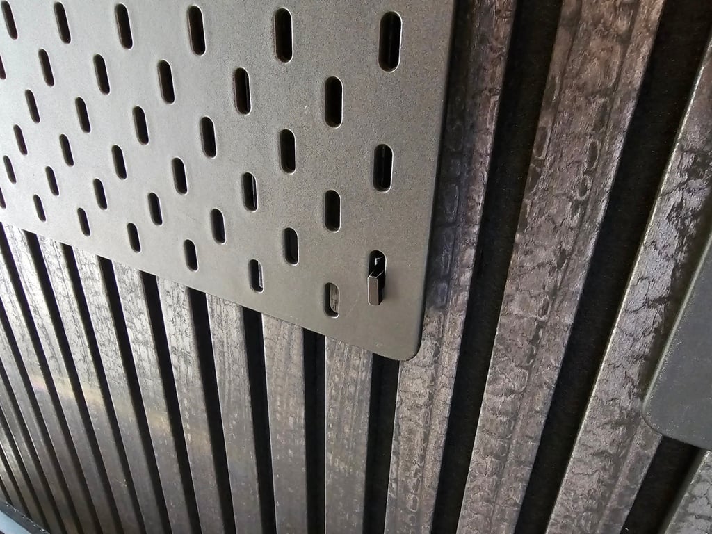 Tämä koukku on tarkoitettu IKEA SKÅDIS -levyjen kiinnittämiseen akustisiin puulevyihin. Akustiset puupaneelit ovat tulleet suosituiksi, mutta niihin voi olla vaikea kiinnittää mitään. Tämä malli mahdollistaa SKÅDIS-levyn kiinnittämisen paneeleihin ruuvaamalla kaksi ruuvia (mieluiten paneelien takaosasta ruuvien piilottamiseksi) kutakin kiinnityskoukkua kohden.