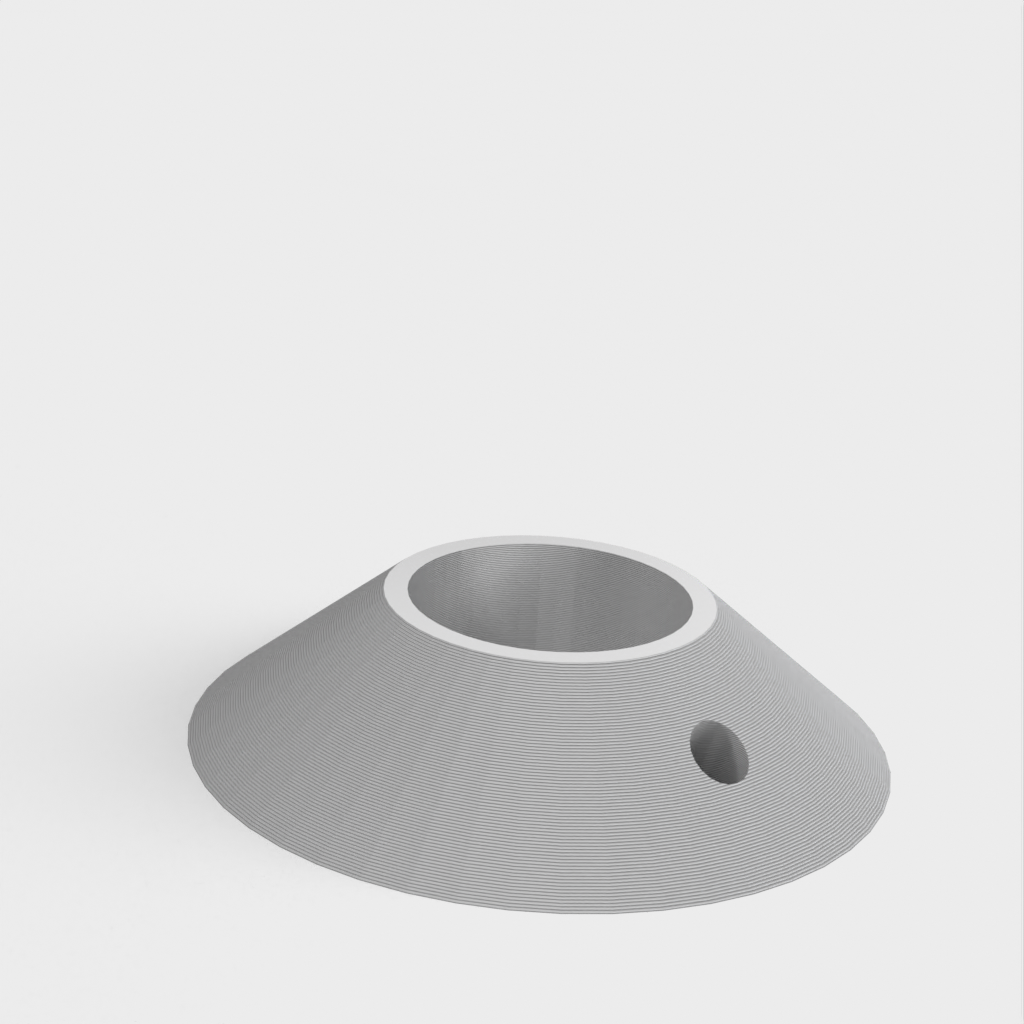 Ulkomitta 45mm, sisäreuna 21mm, sisäreikä 18mm. Rosetti voidaan räätälöidä erikokoiseksi seuraamalla Tinkercad-linkkiä: https://www.tinkercad.com/things/2lv649g1PzM'>https://www.tinkercad.com/things/2lv649g1PzM