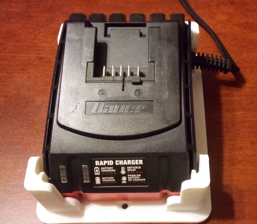 Tämä on kiinnike Bauerin laturin kiinnittämiseen seinään, penkkiin tai hyllyyn. Bauerin laturissa ei ole sisäänrakennettua kiinnityslaitetta, joten tämä lisävaruste auttaa pitämään työtilasi järjestyksessä ja siistinä.