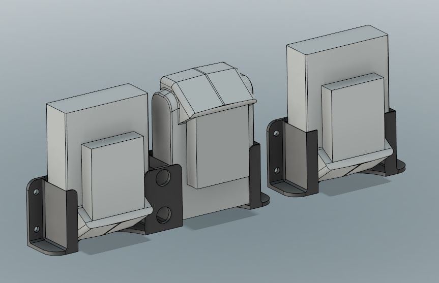 Koska ne on tarkoitettu pidettäväksi vain pystysuorassa latausta varten ja sallivat tulostimen toleranssit, pidikkeet on suunniteltu hieman huolimattomiksi. En lataa DeWalt-akkuja pidikkeissä, mutta ne sopivat, joten pidän ne myös poissa tieltä.