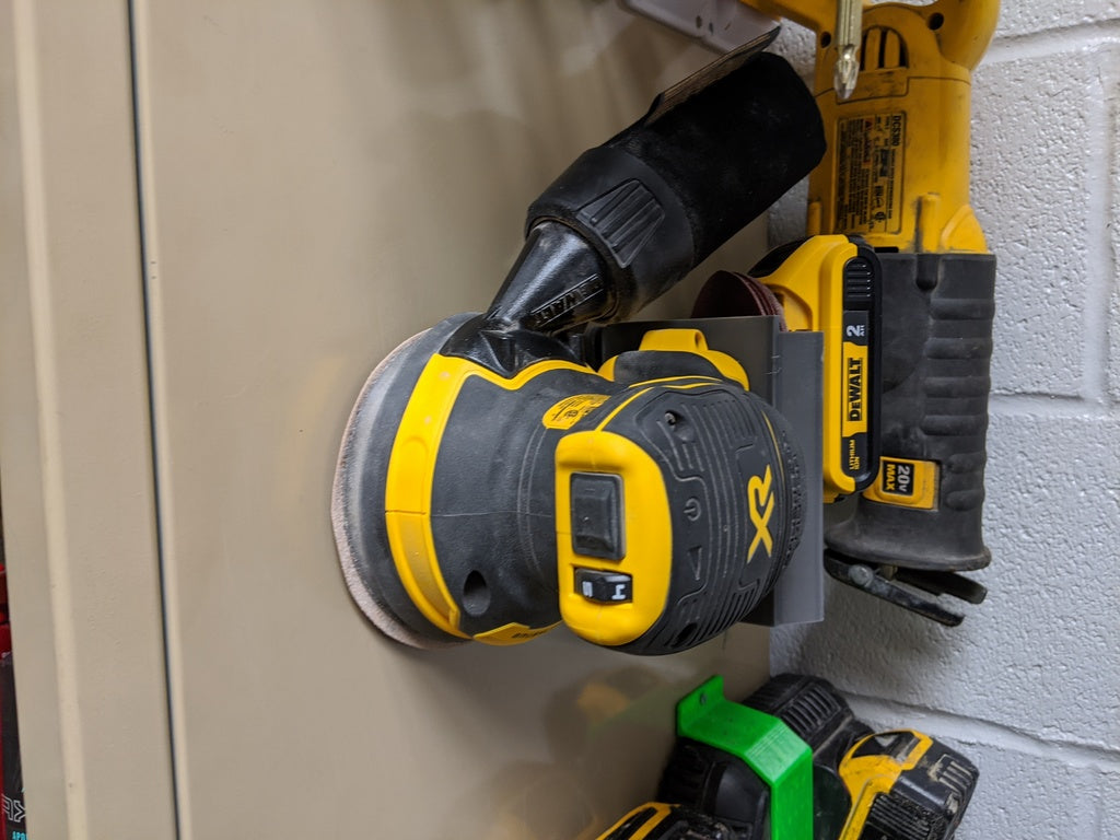 Se on 90° asennustuki Dewalt Orbital Sanderille. Tämä tuote on suunniteltu taka-asennetulla Dewalt 20v -akutelineellä ja tilalla hiekkapaperin säilytykseen.
