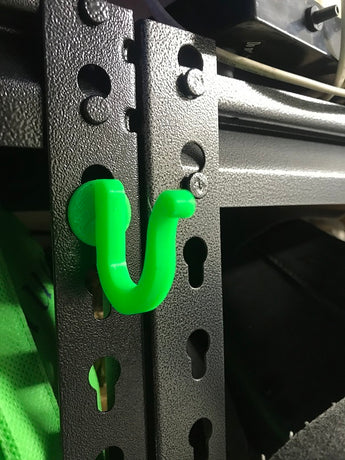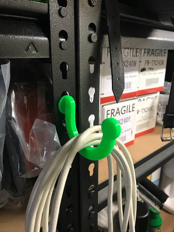 Nämä kaapelikoukut on kehitetty parantamaan järjestystä ja toimivuutta autotalli-, korjaamo- tai varastotiloissasi. Ne on suunniteltu erityisesti kiinnitettäväksi Keyhole-tyyppisiin hyllyjärjestelmiin ja kuormalavahyllyihin, mikä tarjoaa monipuolisen ratkaisun kaapelinhallintaan.
