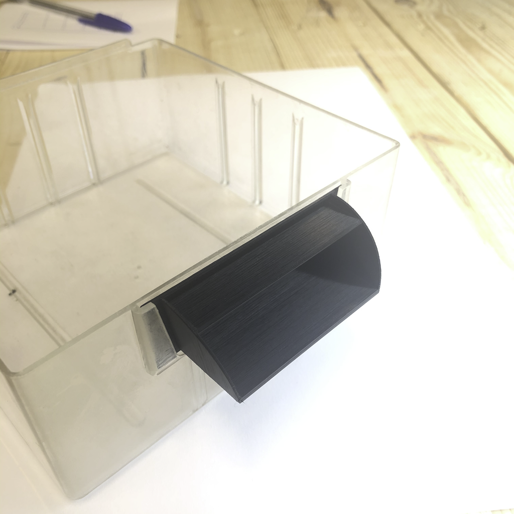 Uudet kahvat raaco-laatikkokaappiin. Ne sopivat täydellisesti urille tarkoitettuun aukkoon ja ne on painettu 75 mm leveiksi. Kahvoissa on 100 % täyte. Raaco-laatikkokaappisi näyttää lähes uudelta ja on paljon helpompi käyttää näiden uusien kahvojen avulla.
