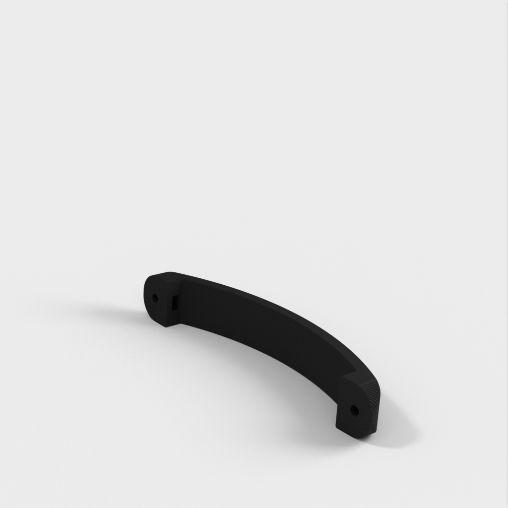Tämä keittiökaapin kahvasarja sisältää neljä erilaista mallia: korikahva, jossa reikien keskipisteiden välinen etäisyys on 128 mm, korinuppi, jossa on yksi reikä, kaksi suoraa nuppia, joissa kummassakin on yksi reikä, ja suora kahva, jossa on kolme reikää - yksi keskellä ja kaksi sivuilla, ja jossa uloimpien reikien keskipisteiden välinen etäisyys on 128 mm. Asennusta varten aseta M4-mutterit aukkoihin ja käytä M4-ruuveja kalusteoven läpi.