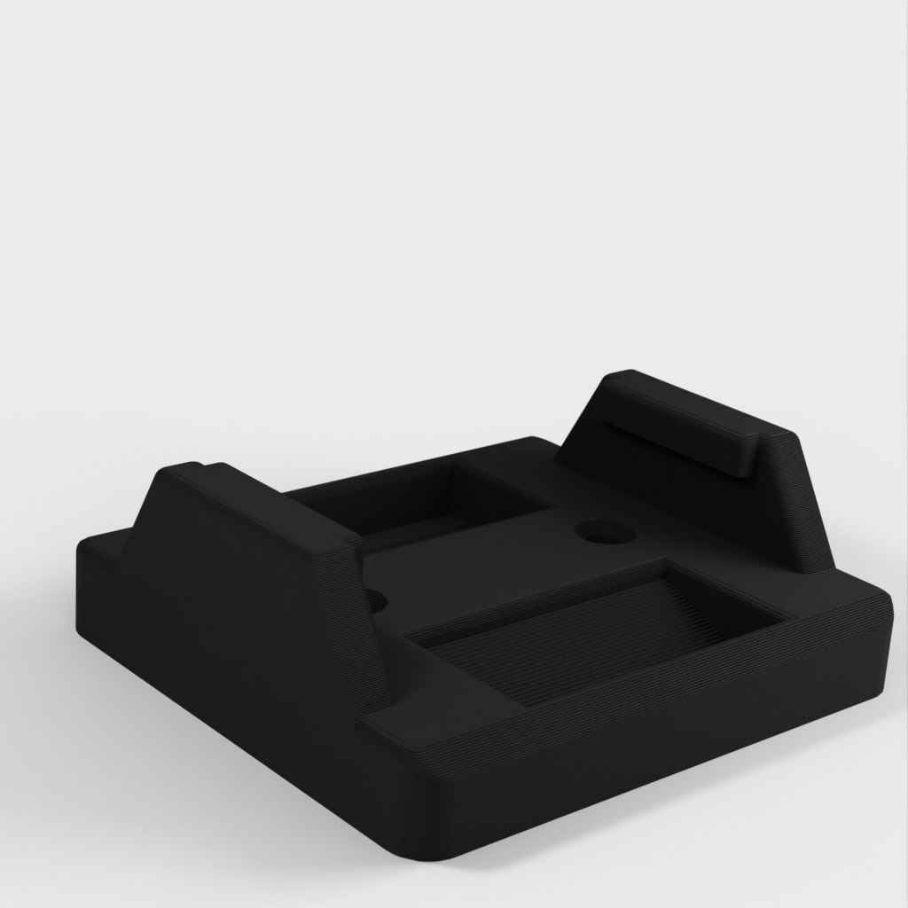 Makita-akunpidin 18 V:n akulle. Pidike voidaan asentaa suoraan seinään 4 ruuvilla tai 1 tuuman reikälevyyn. Makitan 18V-akku voidaan sitten helposti asettaa pidikkeeseen, jolloin se on helposti saatavilla ja siistii työpajan, vajan tai työauton.