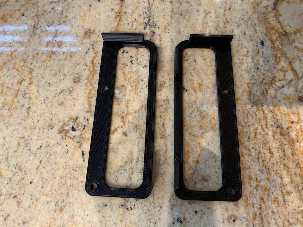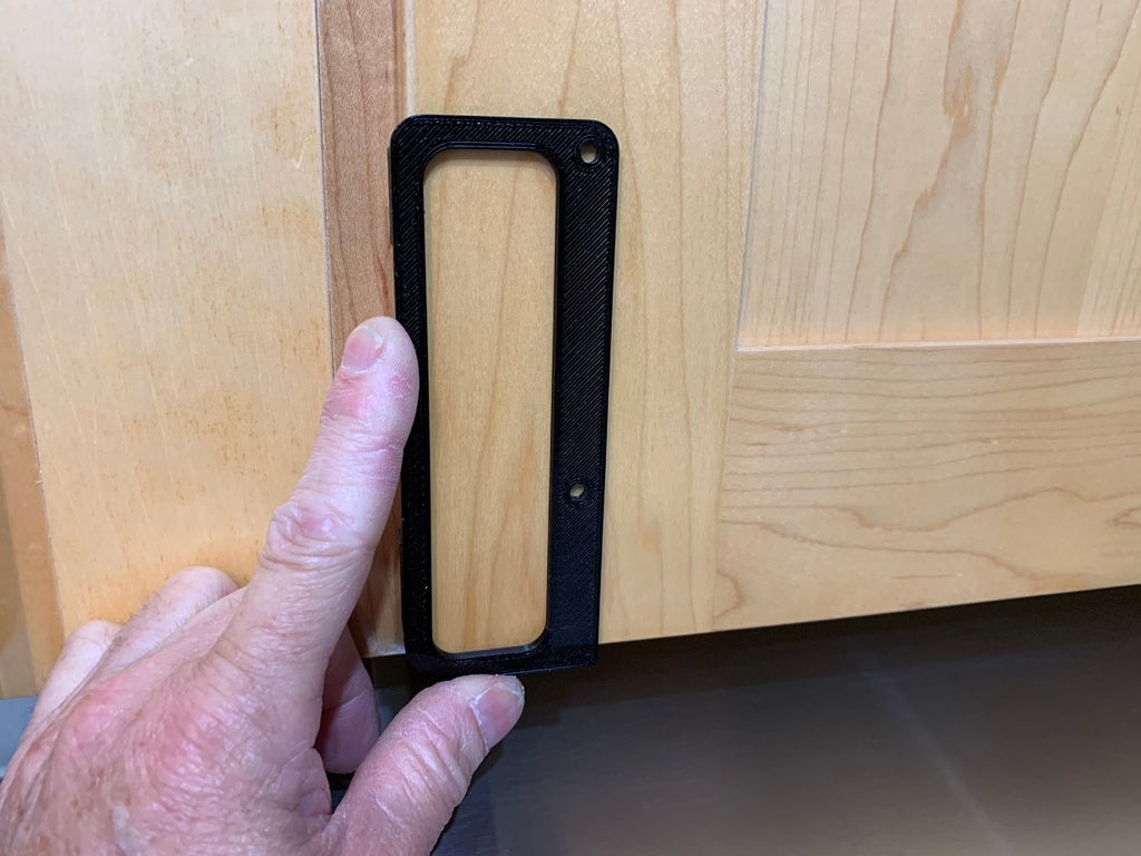 Mallit kaappien ja laatikoiden kahvojen poraamiseen, suunniteltu kahvoille, joissa on 2 ruuvia ja ruuviväli 3'. Saat ovimallista sekä vasen- että oikeakätisen version peilaamalla STL-tiedoston slicer-ohjelmassasi (Gcode-generaattori). Laatikkomalli sopii täydellisesti paikalleen ylälaatikoihin. Merkitse vasen ja oikea keskikohta teipillä. Korkeampien, alempien laatikoiden kohdalla kiinnitä teipin pala laatikon etuosaan merkitäksesi laatikon keskipisteen. Mallin keskellä on reikä, jotta löydät merkinnät helposti.