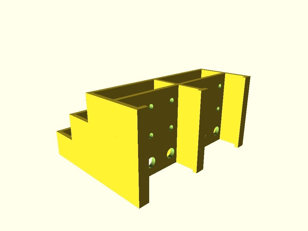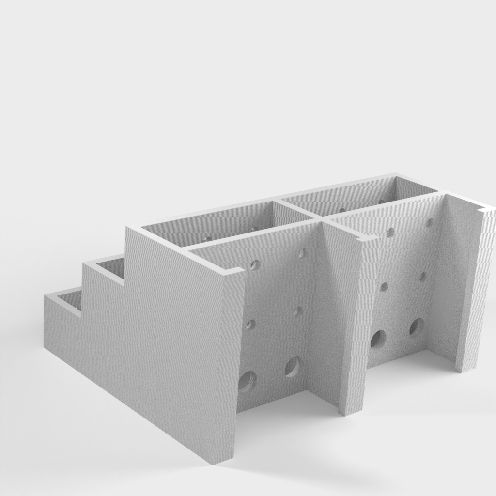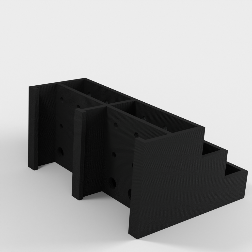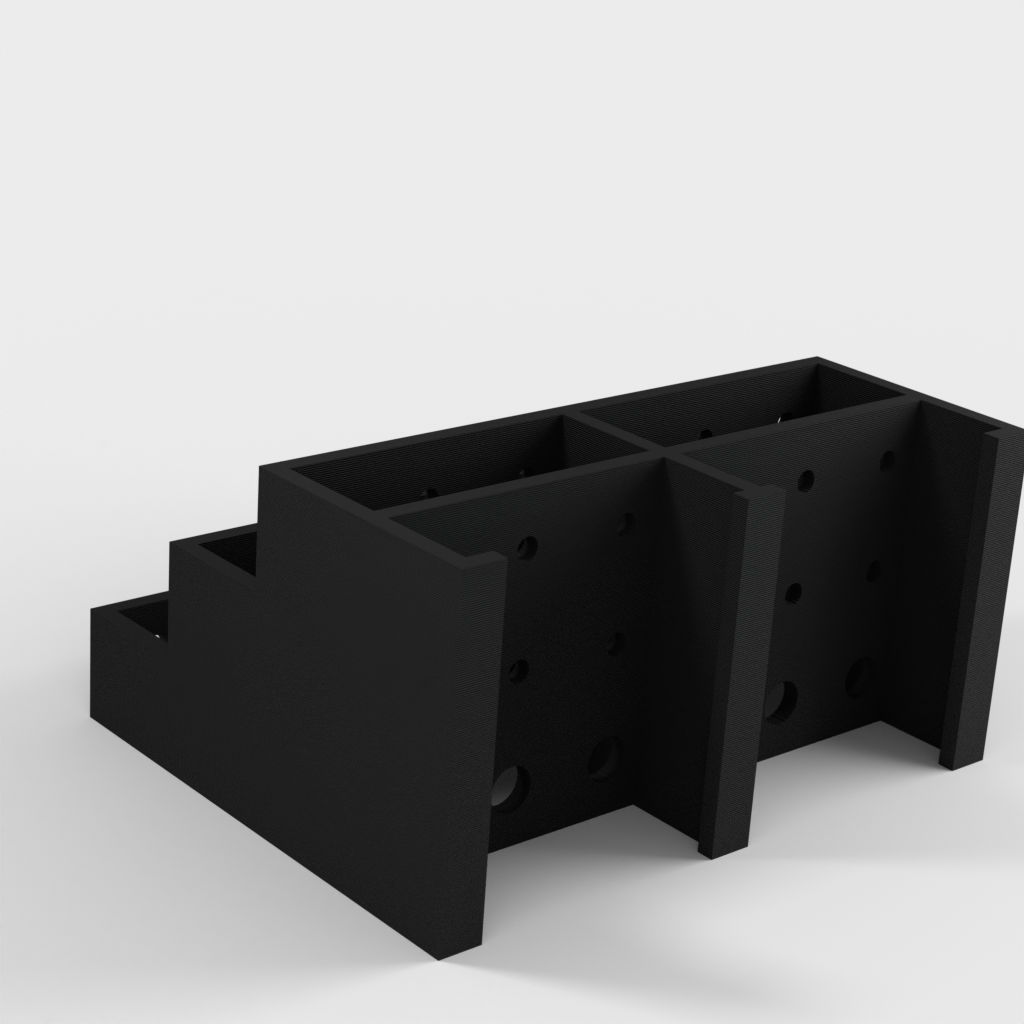 Tämän ruuvimeisselipidikkeen avulla saat helposti ja kätevästi ruuvimeisselisi hallintaan. Pidikkeeseen mahtuu 3 sarjaa 6 ruuvimeisseliä, joten sinulla on aina järjestetty yleiskatsaus työkaluihisi. Jokaisella ruuvimeisselillä on oma paikkansa, kolmella tasolla lyhyille, keskipitkille ja pitkille ruuvimeisseleille. Seinäasennusversion saat tästä mallista: https://www.thingiverse.com/thing:1240992