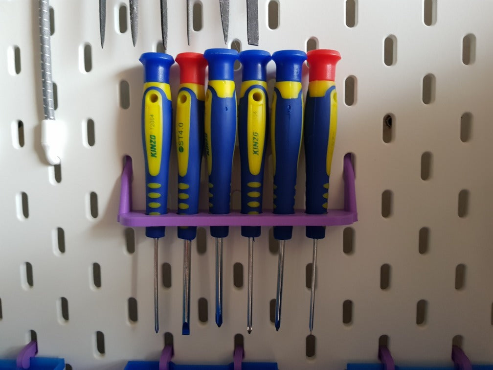 Ruuvimeisselin pidike 6 pienemmälle ruuvimeisselille IKEA SKADIS (SKÅDIS) taittopöytään