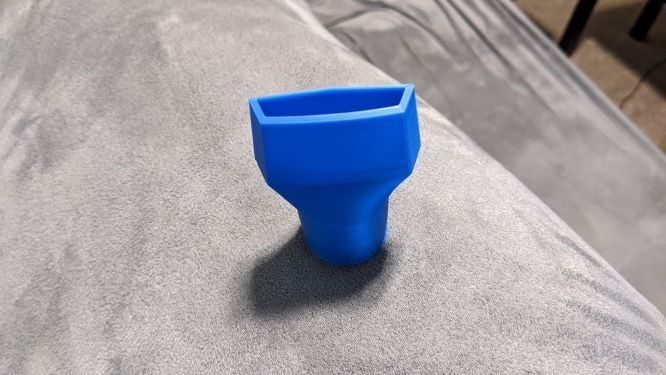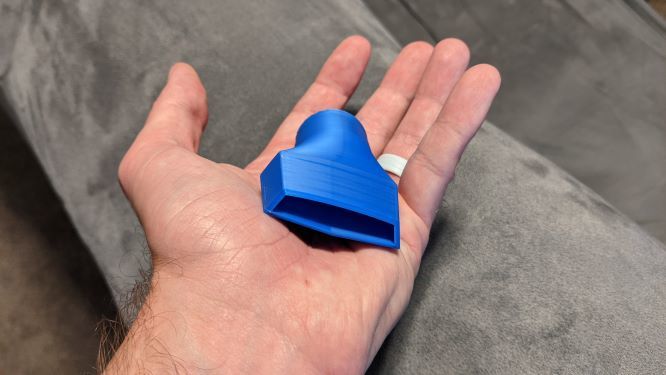 Suutinsovitin Ryobi One+ -johdottomaan pölynimuriin. Tämä tukeva suutinsovitin sopii 1,25 tuuman letkuun, mikä varmistaa optimaalisen istuvuuden ja toiminnan. Mukana SolidEdge .par -tiedosto pölynimurin sisään asetettavaa kappaletta varten, jotta voit suunnitella omia sovittimia ja suuttimia.