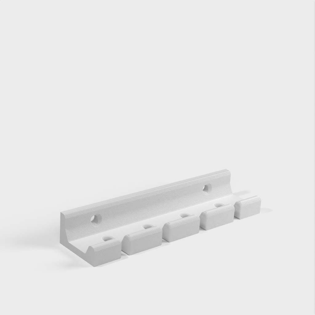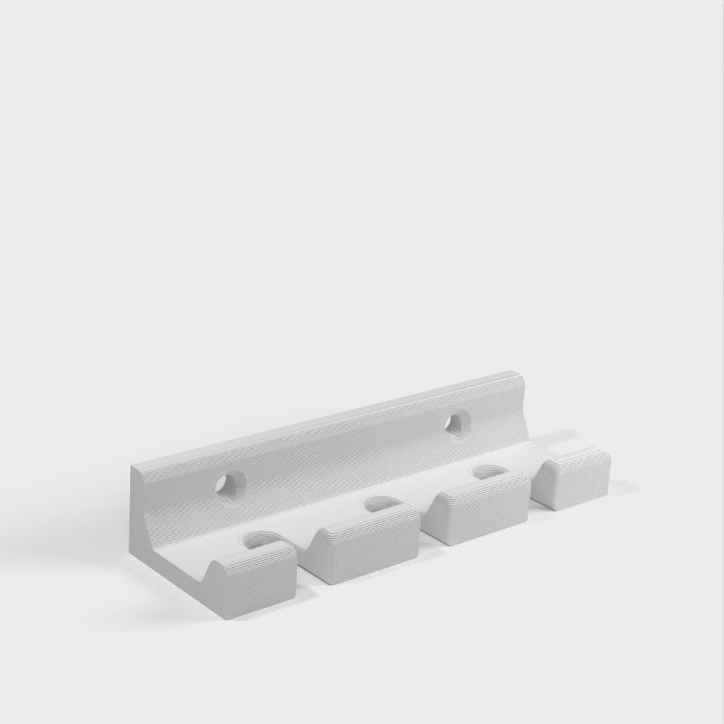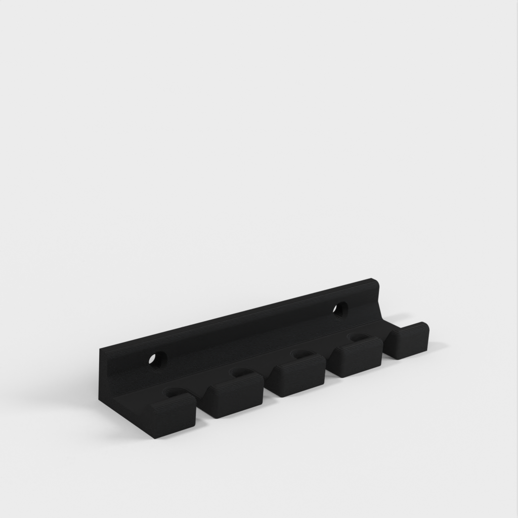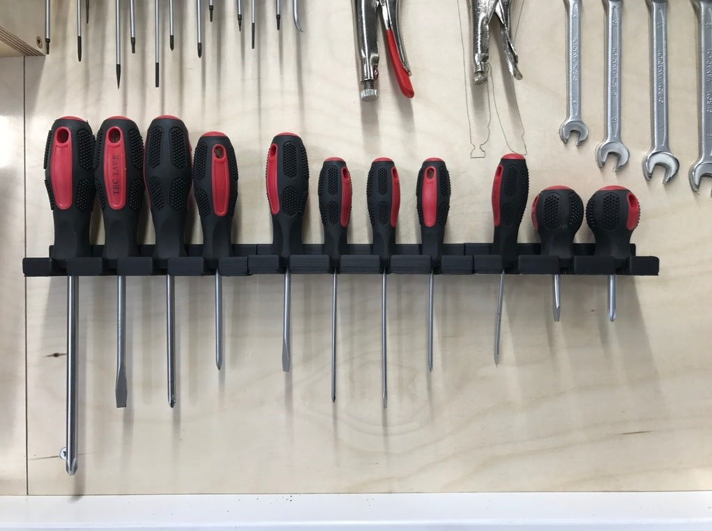 Tämä on ruuvimeisselin pidike seinäasennukseen. Pidike voidaan helposti kiinnittää suoraan seinään 4 ruuvilla. Ruuvimeisselit voidaan sen jälkeen helposti sijoittaa pidikkeeseen, jolloin työpajasta, vajasta tai työajoneuvosta tulee siistimpi.
