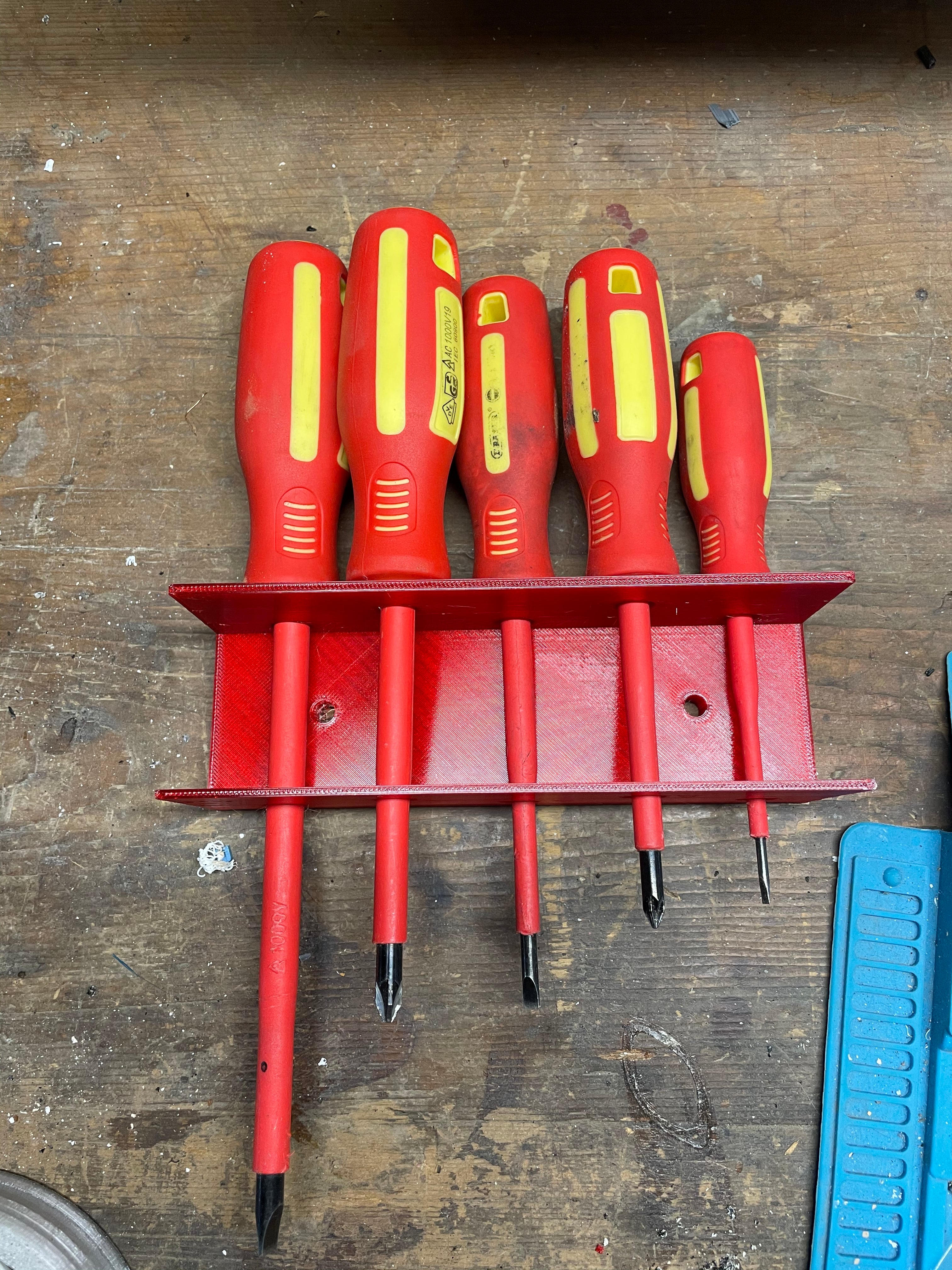 Seinään kiinnitettävä pidike suurille ruuvimeisseleille