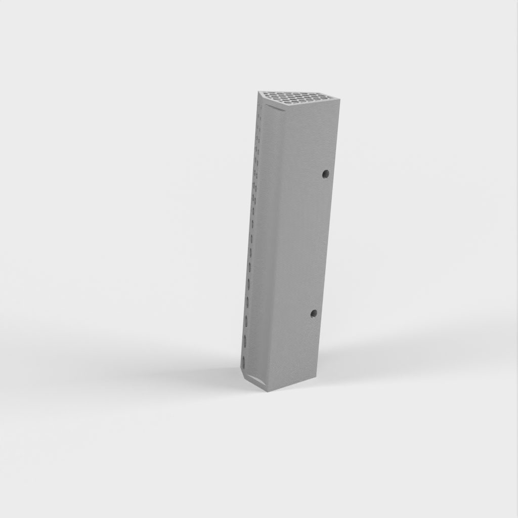 Se on suunniteltu kiinnitettäväksi seinään kahdella ruuvilla, mutta se voidaan räätälöidä kiinnitettäväksi liimalla (kuten Command Strips) tai magneeteilla.