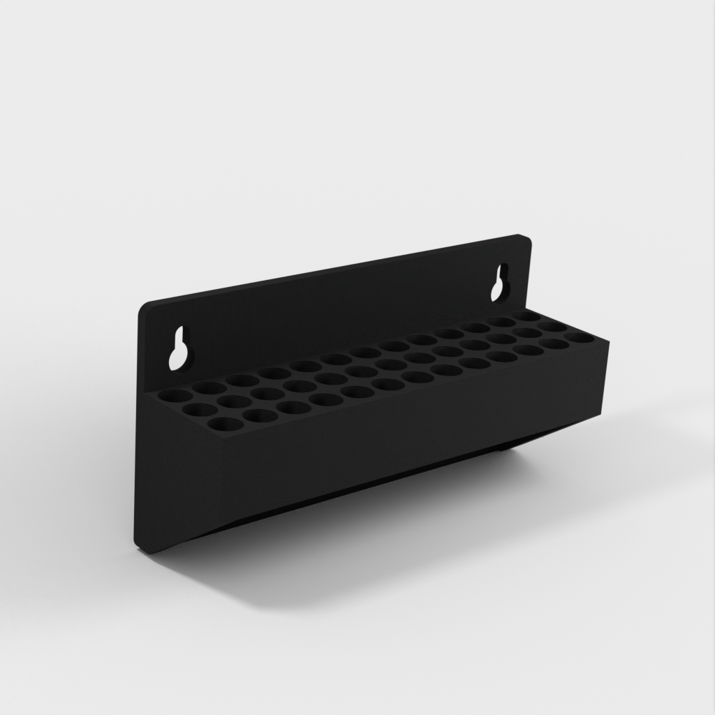 Seinälle kiinnitettävä ruuvitaltan kärjen pidike, suunniteltu pitämään jopa 39 kärkeä. Saatavilla kaksi mallia, valitse kiinteä tai ripustettu malli tarpeidesi mukaan.