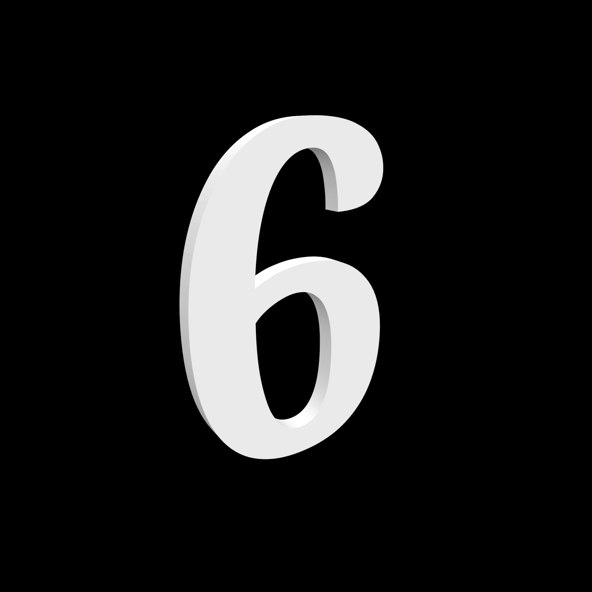Tämä on talonumero "6" Noto Serif -fontilla. Voit yhdistää useita numeroita tai kirjaimia luodaksesi oman sommittelusi.