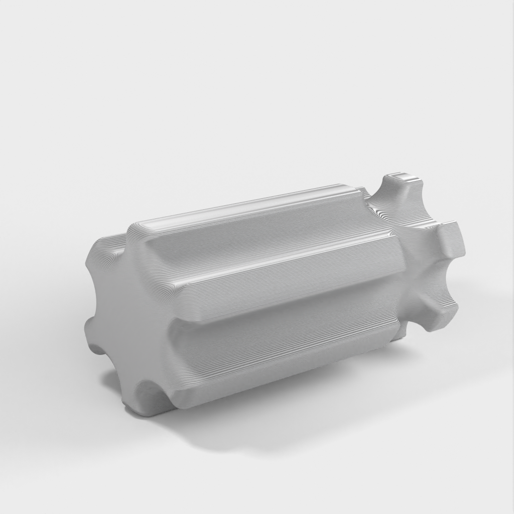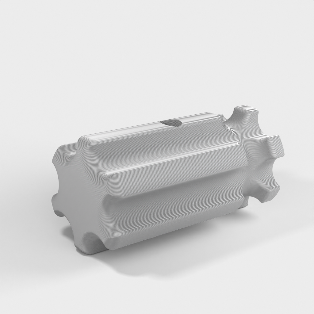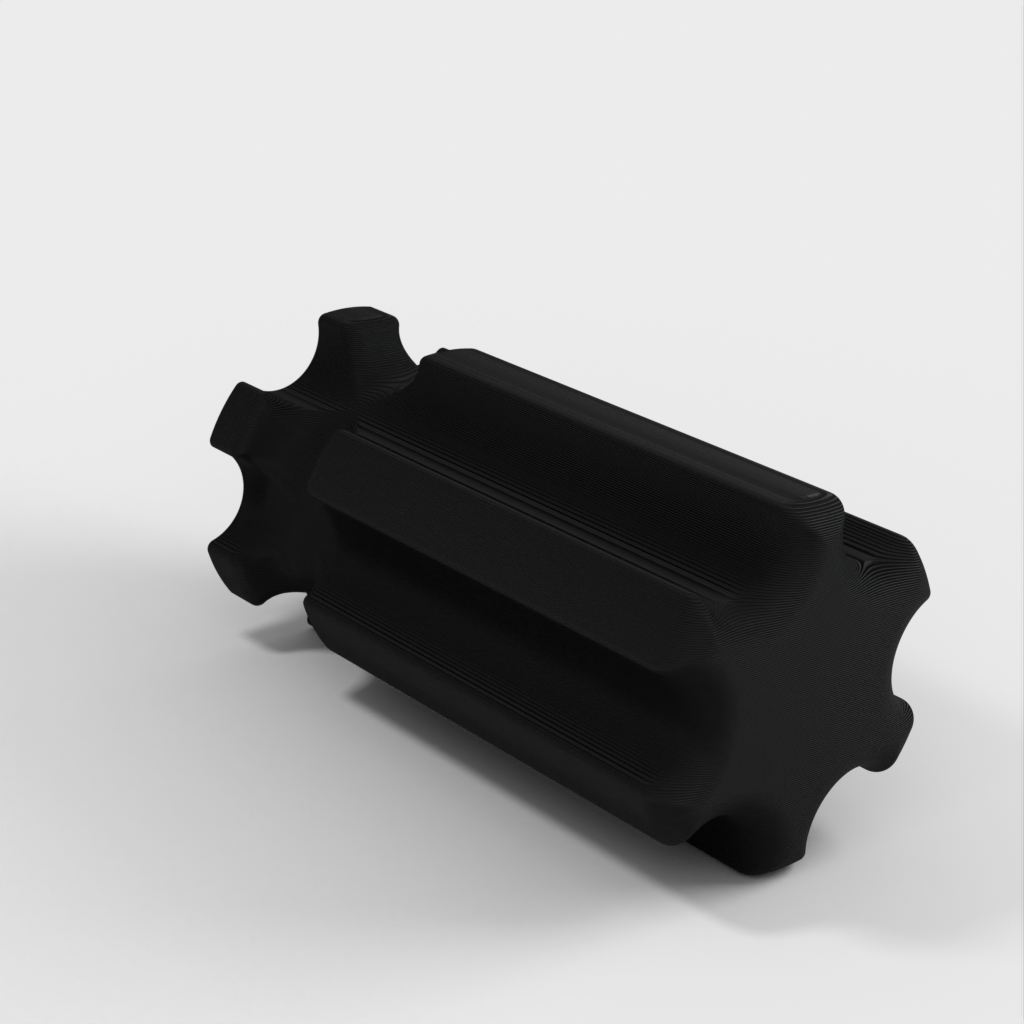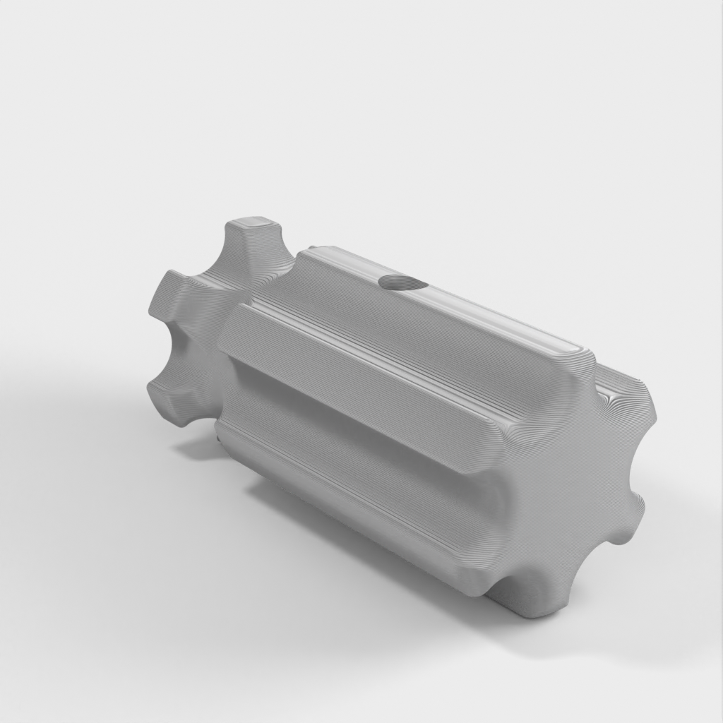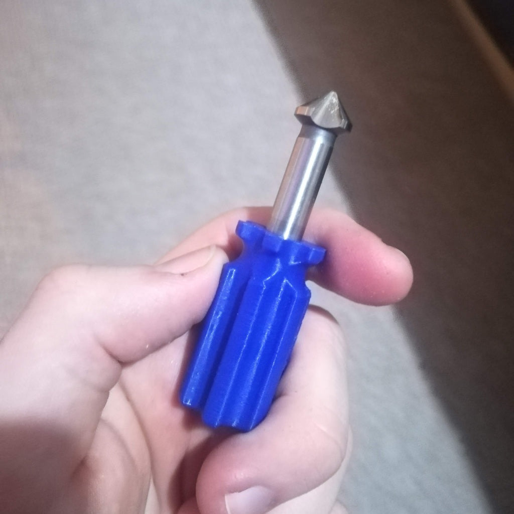 Työkalupidike, joka on suunniteltu käsittelemään hiomatyökaluja kätevästi. Sitä voidaan käyttää sekä puulle että muoville ilman poraa. Kahva on mallinnettu halvan lasten ruuvimeisselin mukaan, jotta sitä on helppo käsitellä. Reiät on suunniteltu halkaisijaltaan 8,2 mm:lle, ja niissä on tilaa M4-säätöruuville työkalun lukitsemiseksi paikalleen. Saatavana on myös versio ilman säätöruuvin reikää.