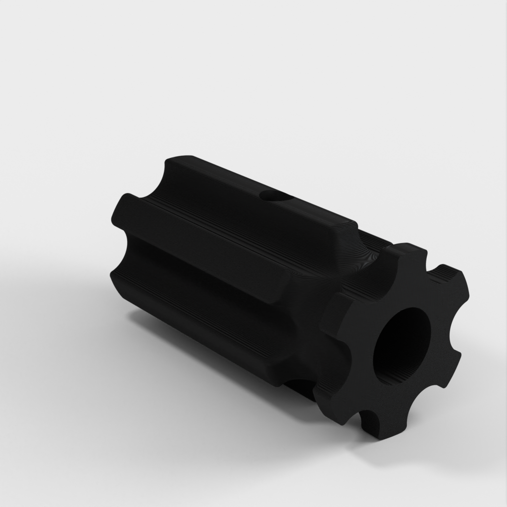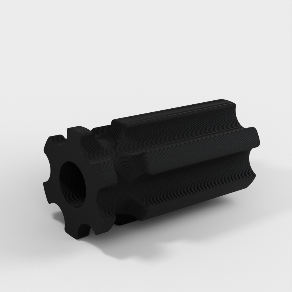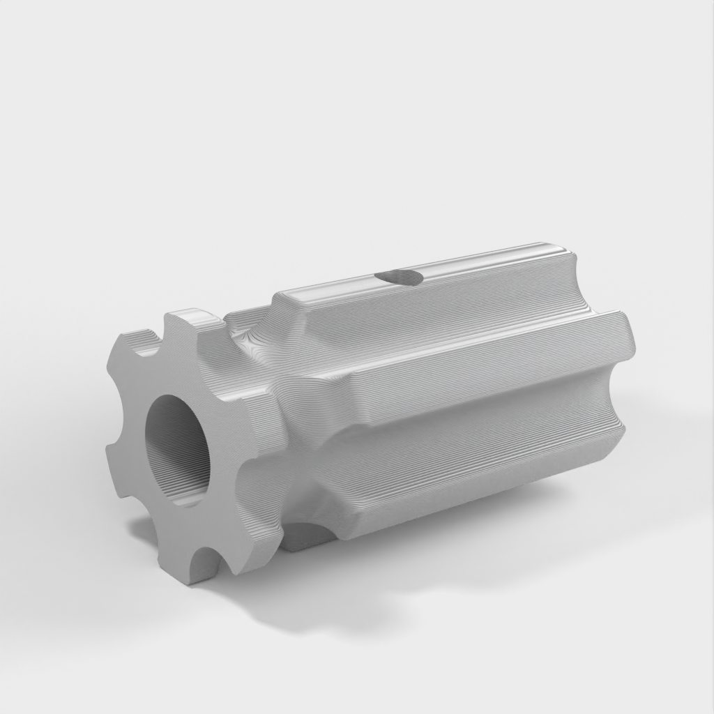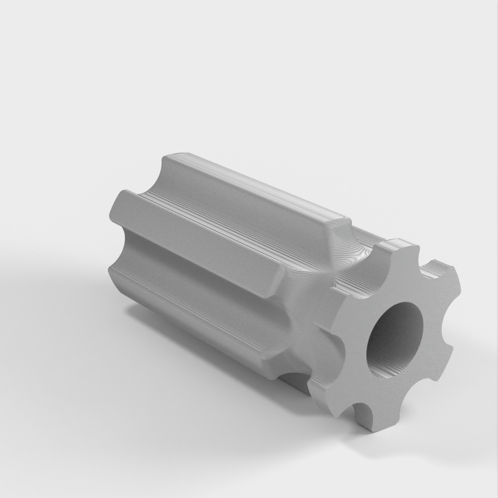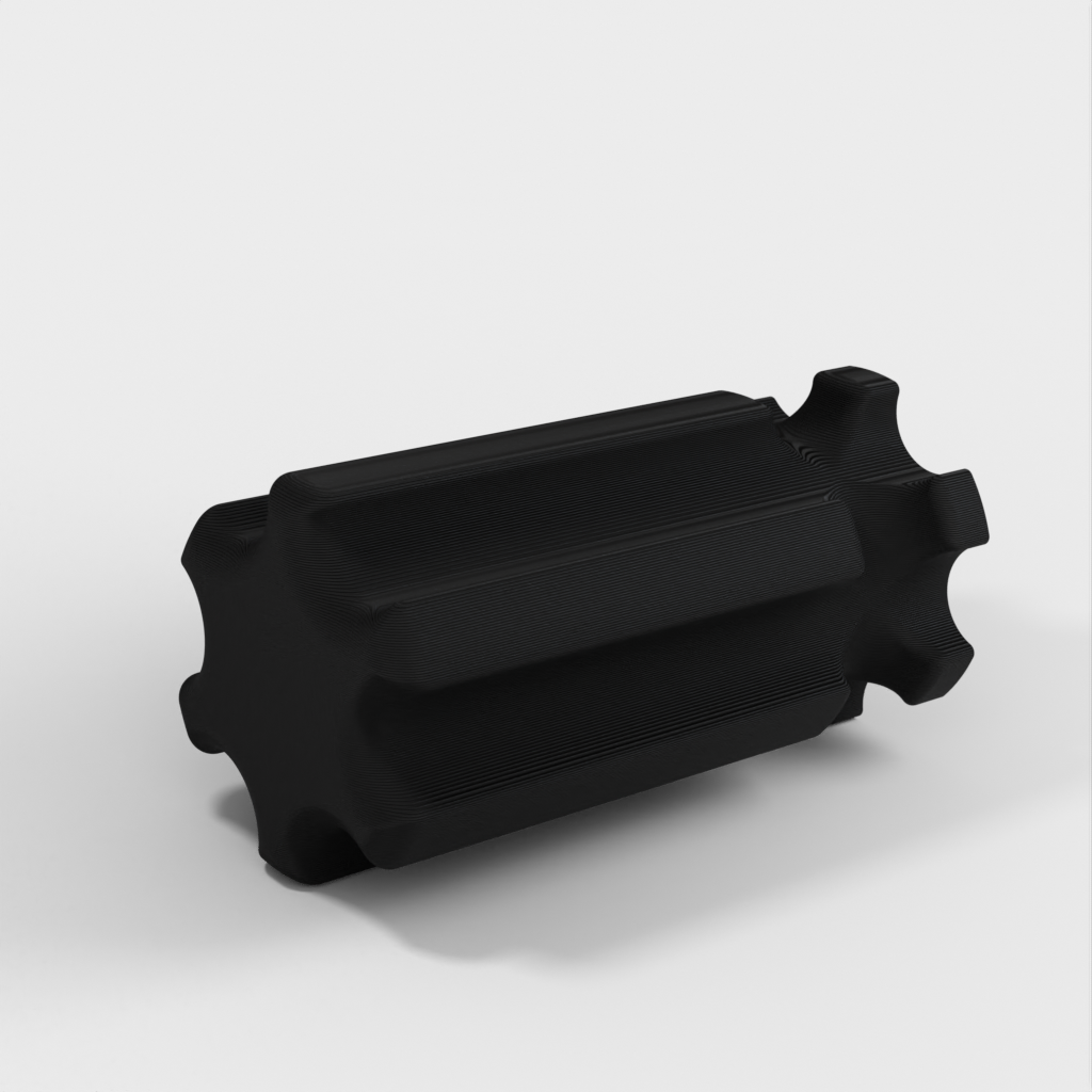 Työkalupidike, joka on suunniteltu käsittelemään hiomatyökaluja kätevästi. Sitä voidaan käyttää sekä puulle että muoville ilman poraa. Kahva on mallinnettu halvan lasten ruuvimeisselin mukaan, jotta sitä on helppo käsitellä. Reiät on suunniteltu halkaisijaltaan 8,2 mm:lle, ja niissä on tilaa M4-säätöruuville työkalun lukitsemiseksi paikalleen. Saatavana on myös versio ilman säätöruuvin reikää.