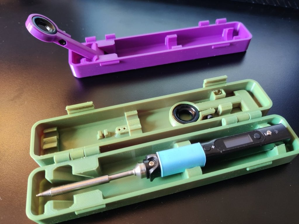 Kotelo ja pidike TS100-kokoiselle Pinecil-juotosraudalle. Tämä tuote on täydellinen pitämään Pinecil-juotoskolvi turvallisesti ja helposti saatavilla, kun et käytä sitä. Tämä juotosraudan kotelo sopii sekä kotikäyttöön että kaupalliseen käyttöön, ja se pitää työpaikkasi puhtaana ja järjestyksessä.