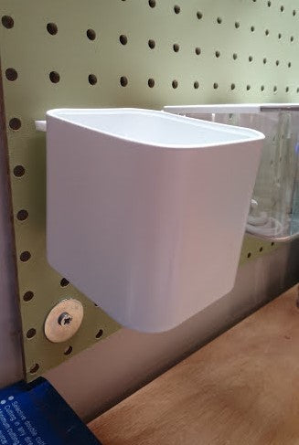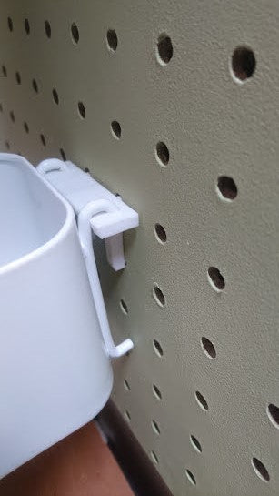 Tämä on päivitetty sovitin Ikea SKÅDIS -metallirasioiden ripustamiseen tavalliseen tapituslevyyn Ikean erityisen tapituslevyn sijaan. Adapterin koukut ovat nyt vahvempia ja kestävät enemmän painoa. Laatikon pohjatappeihin ei ole tehty välikappaletta laatikon tasaamiseksi, koska se ei ole minulle tässä vaiheessa tarpeellinen.