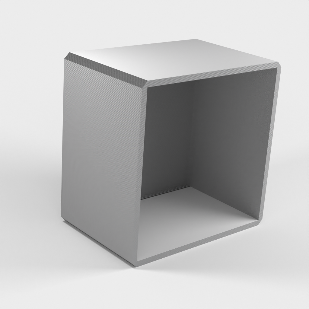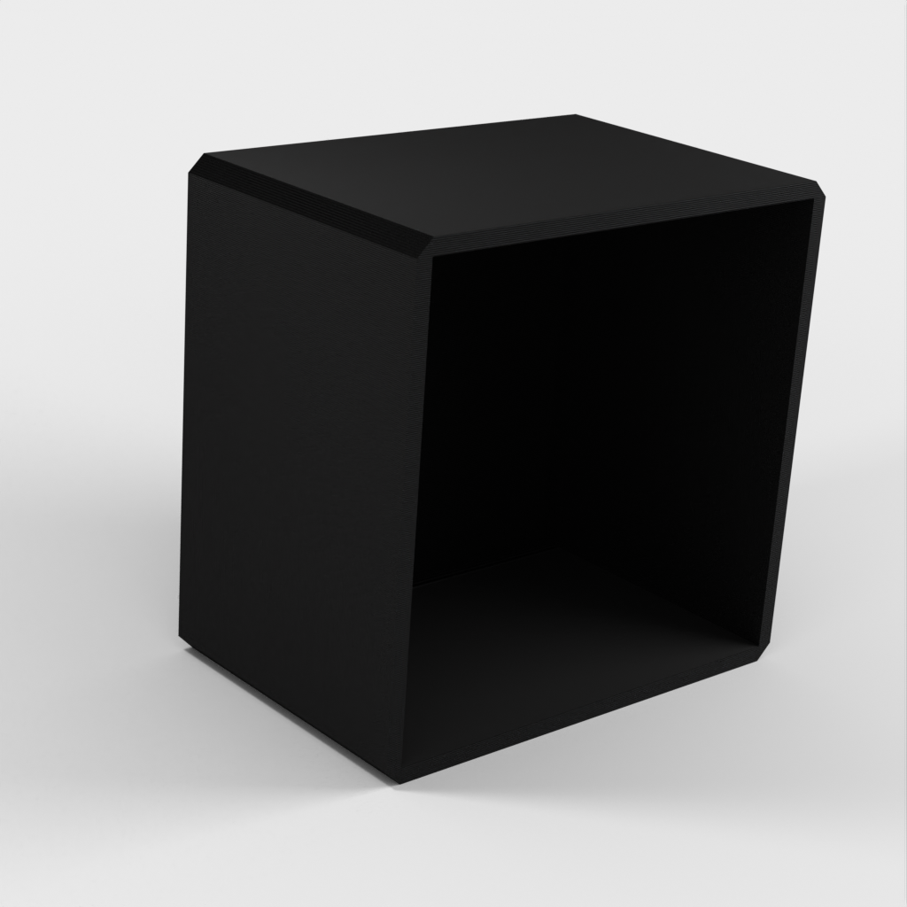 Tämä on 1x1-mallinen, modulaarinen, litteäpohjainen laatikosto, joka on suunniteltu säilyttämään pieniä irtonaisia esineitä, kuten pikkurahaa ja pieniä koriste-esineitä. Sen alkuperäinen koko on 3 tuumaa x 3 tuumaa ja siinä on sileä pohja. Tämä muunnos eroaa kuvioidusta muunnoksesta.