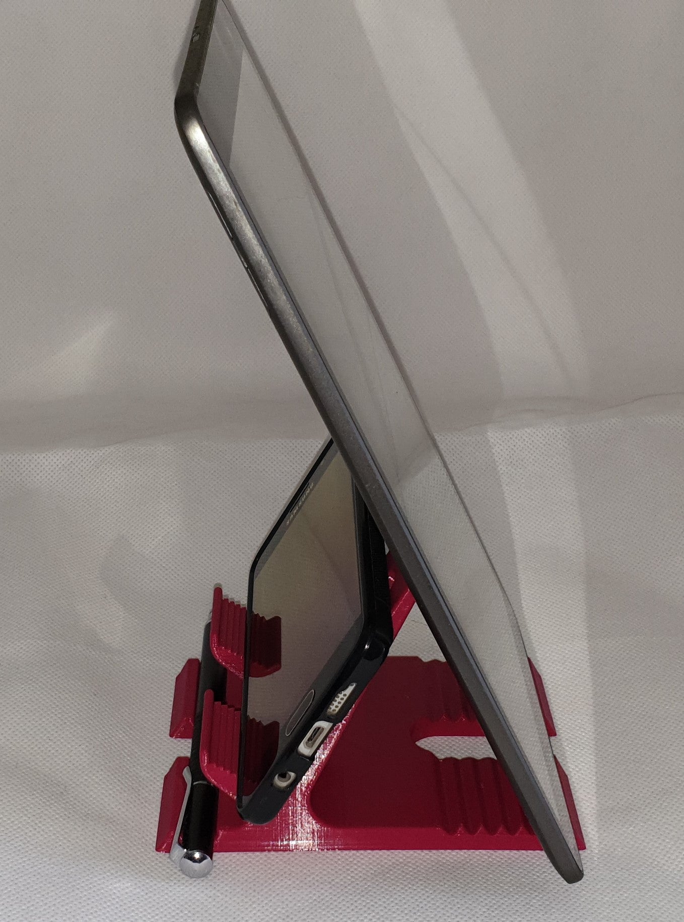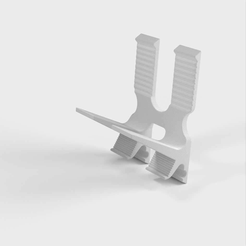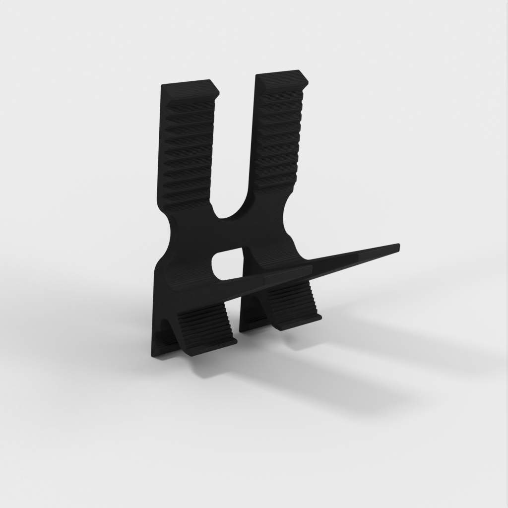 Tämä on älypuhelinten jalusta. Sen avulla voit sijoittaa puhelimesi helposti pöydälle tai mille tahansa tasaiselle pinnalle, jolloin sen käyttö ja katselu on helppoa. Se sopii täydellisesti videoiden katseluun, lukemiseen, videopuheluiden soittamiseen tai jopa yksinkertaisena jalustana lataamista varten.